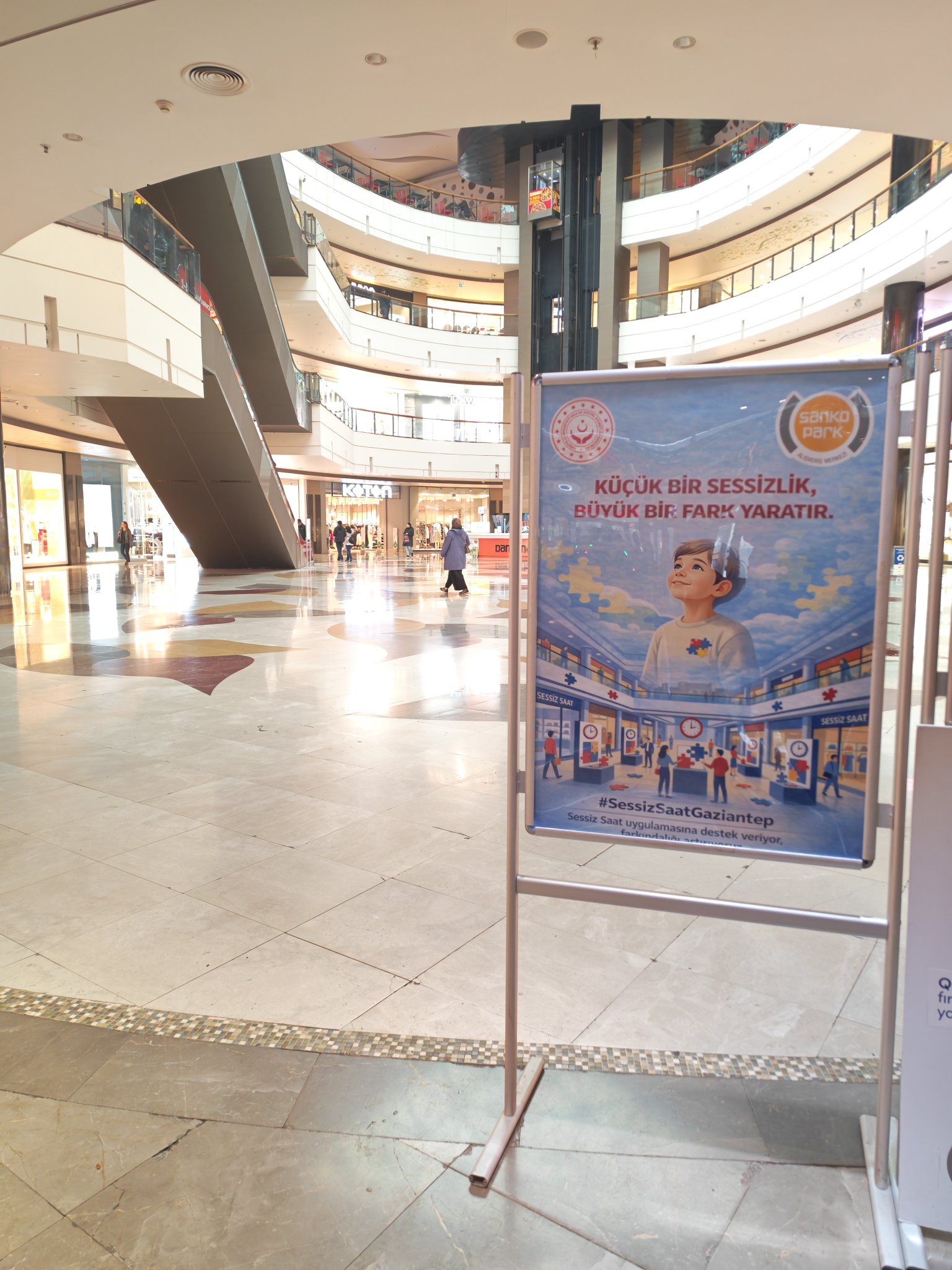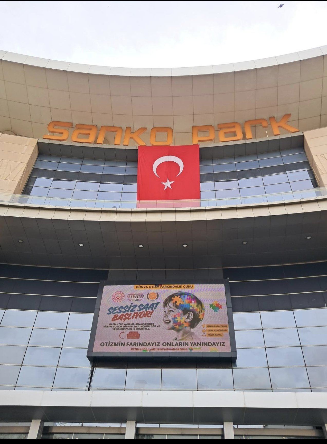 Gaziantep Valiliği koordinasyonunda, Sanko Park AVM, Öküz Burger ve Gelişim Otizm ve Spor Köyü iş birliğiyle düzenlenen etkinlikte, otizmli çocuklar ve aileleri bir araya geldi. Program kapsamında AVM’de saat 11.00’de başlayan “Sessiz Saat” uygulamasıyla mağazalardaki ışıklar azaltıldı, müzikler kapatıldı ve anonslar en aza indirildi. Bu uygulama, otizmli çocuklar için daha huzurlu bir sosyal alan ve alışveriş deneyimi sağladı. Etkinliğe katılan 20 otizmli çocuk ve aileleri, gün boyunca çeşitli aktiviteler ve interaktif etkinliklerle keyifli vakit geçirdi. Program, hep birlikte yenilen yemeğin ardından tamamlandı.
