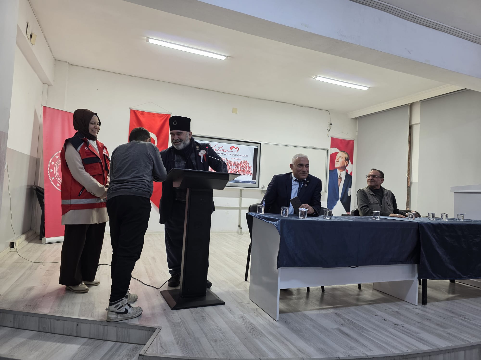 Program sonunda, katılımcı kahramanlarımıza teşekkür edilerek çiçek takdim edildi; hatıra fotoğrafları çekildi. Etkinlik, öğrencilerimizin coşkusu ve gurur dolu bakışlarıyla sona erdi.