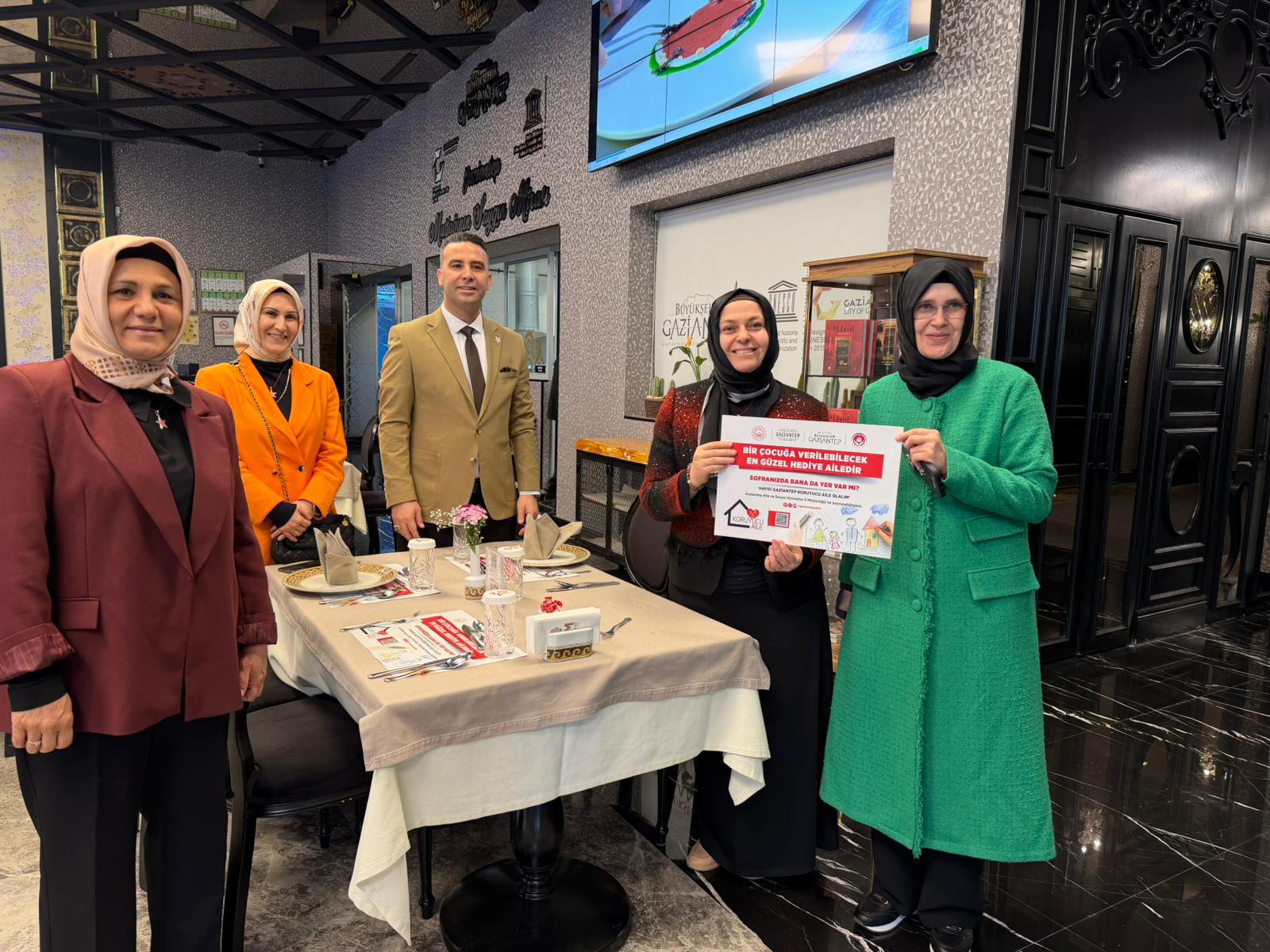 Program, Vali Yardımcımız Sayın Bülent Uygur’un başkanlığında; Gaziantep Valimiz Sayın Kemal Çeber’in kıymetli eşi Sayın Neslihan Çeber Hanımefendi, Büyükşehir Belediye Başkan Vekili Sayın Zehra Ünal, İl Müftümüz Sayın Mustafa Soykök ve İl Müdürümüz Sayın Umut Zeybek’in teşrifleriyle gerçekleştirildi. Büyükşehir Belediyemiz iş birliğinde hazırlanan koruyucu aile temalı özel yemek servis altlıkları, şehrin en yoğun kafe ve restoranlarına ulaştırılmaya başlandı.