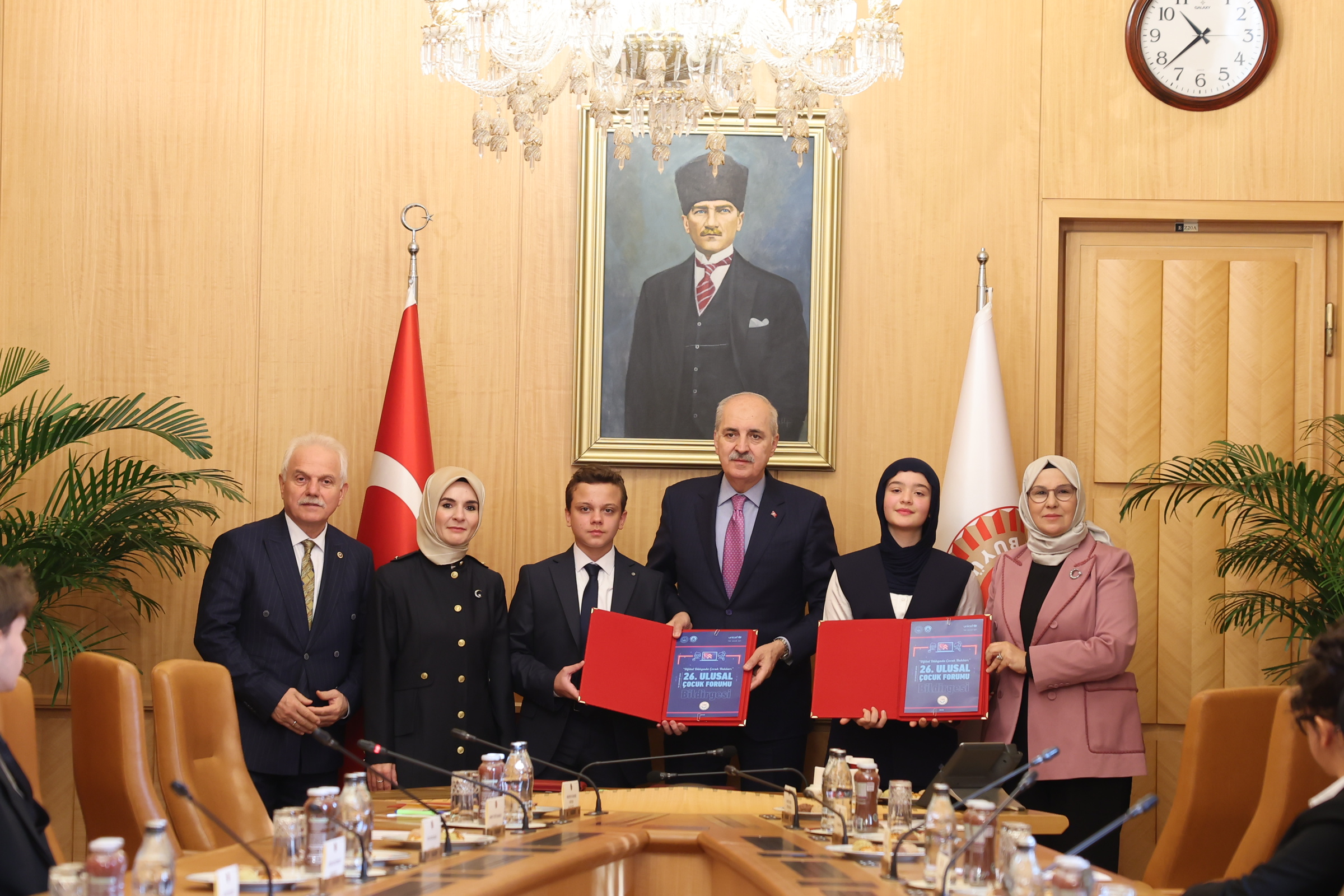 TBMM Başkanı Numan Kurtulmuş, Meclis’te Aile ve Sosyal Hizmetler Bakanımız Mahinur Özdemir Göktaş ile 26. Ulusal Çocuk Forumu dolayısıyla Ankara'da bulunan çocuk temsilcilerini kabul etti