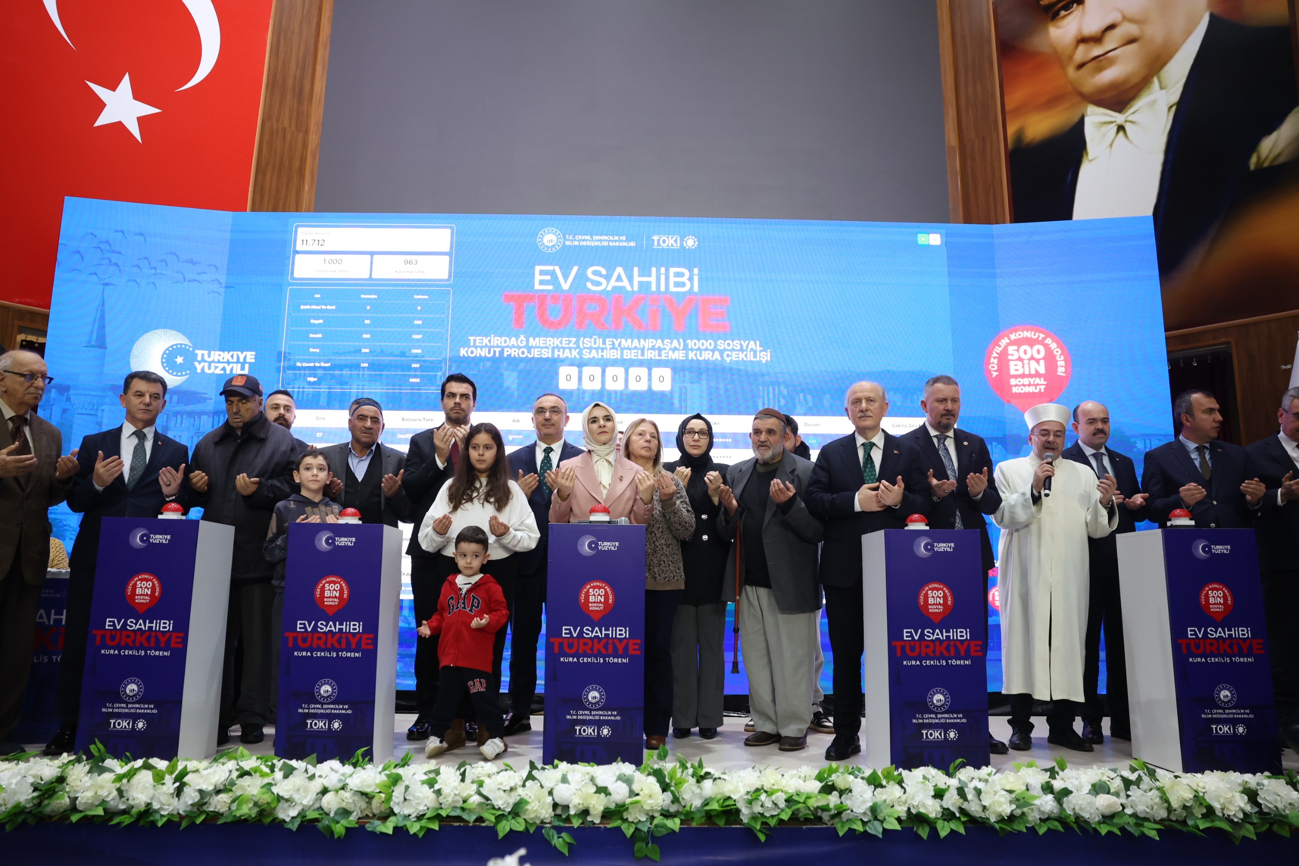 "Bugün Tekirdağ'ımızda 6 bin 865 konutun hak sahiplerini belirleyeceğiz. Yüzyılın Konut Projesi engelli vatandaşlarımız ve şehit yakınlarımız için ayrılan özel kontenjanla hiç kimseyi geride bırakmayan yaklaşımın bir yansımasıdır. Çünkü konut, sadece bir bina değildir. Şehirlerin nitelikli yaşam alanlarına kavuşması, mahallenin huzuru, ailenin birliğidir. Bu anlamda hayata geçirilen her bir sosyal konut projesi 'aile dostu ekosistem' anlayışımızın kıymetli bir parçasıdır."
