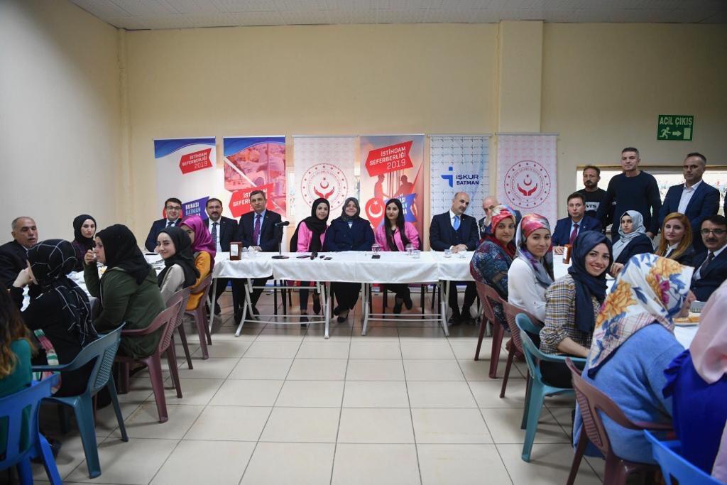 "İŞKUR aracılığıyla 30 bine yakın vatandaşımızı işe yerleştirdik. İstiyoruz ki kalıcı ve sürdürülebilir bir istihdam sağlayalım. İşverenleri de destekledik. İşverene bugüne kadar görülmemiş bir teşvik paketi sunduk. Ekonomide, ticarette, sosyal politikalarda, tarımda, turizmde bu coğrafyanın sahip olduğu tüm potansiyeli harekete geçirebilecek, tüm alanlarda Türkiye'yi daha iyi seviyeye çıkarabilecek durumdayız. Bundan Batman'ın da istifade etmesini istiyoruz.."