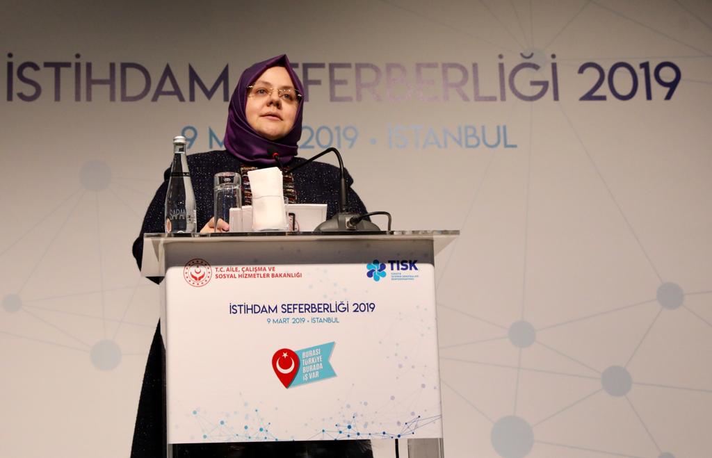 Aile, Çalışma ve Sosyal Hizmetler Bakanı Zehra Zümrüt Selçuk, "Bizim işverenlerden beklentimiz ivmenizi daha da yükseltmeniz ve etkinliğinizi arttırmanız. Tüm işverenlerin Cumhurbaşkanımıza verdiği sözü 2019 yılının sonuna kadar tutacağına inanıyoruz." dedi.
