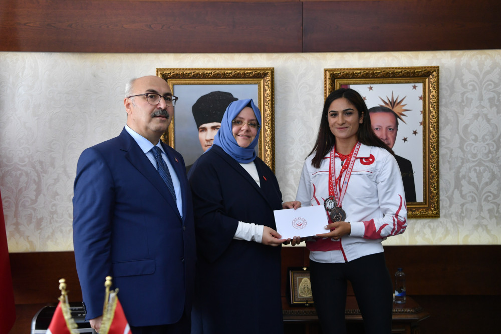 Bakan Zehra Zümrüt Selçuk daha sonra Bakanlığa bağlı çocuk evlerinde yetişmiş ve Çocuk Evleri Koordinasyon Merkezi’ne kayıtlı sporcu Dilşah Kurt’un madalyasını taktı. Uluslararası 32. Ahmet Cömert Boks turnuvalarında Büyük Bayanlar kategorisinde bronz madalya alan Dilşah Kurt’a hediye takdim edildi.