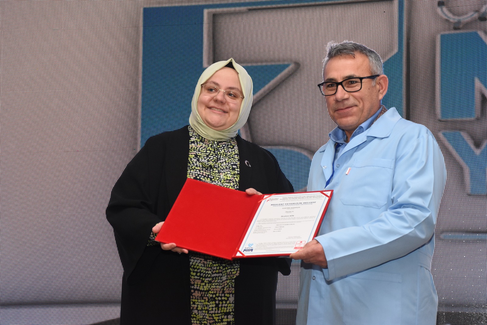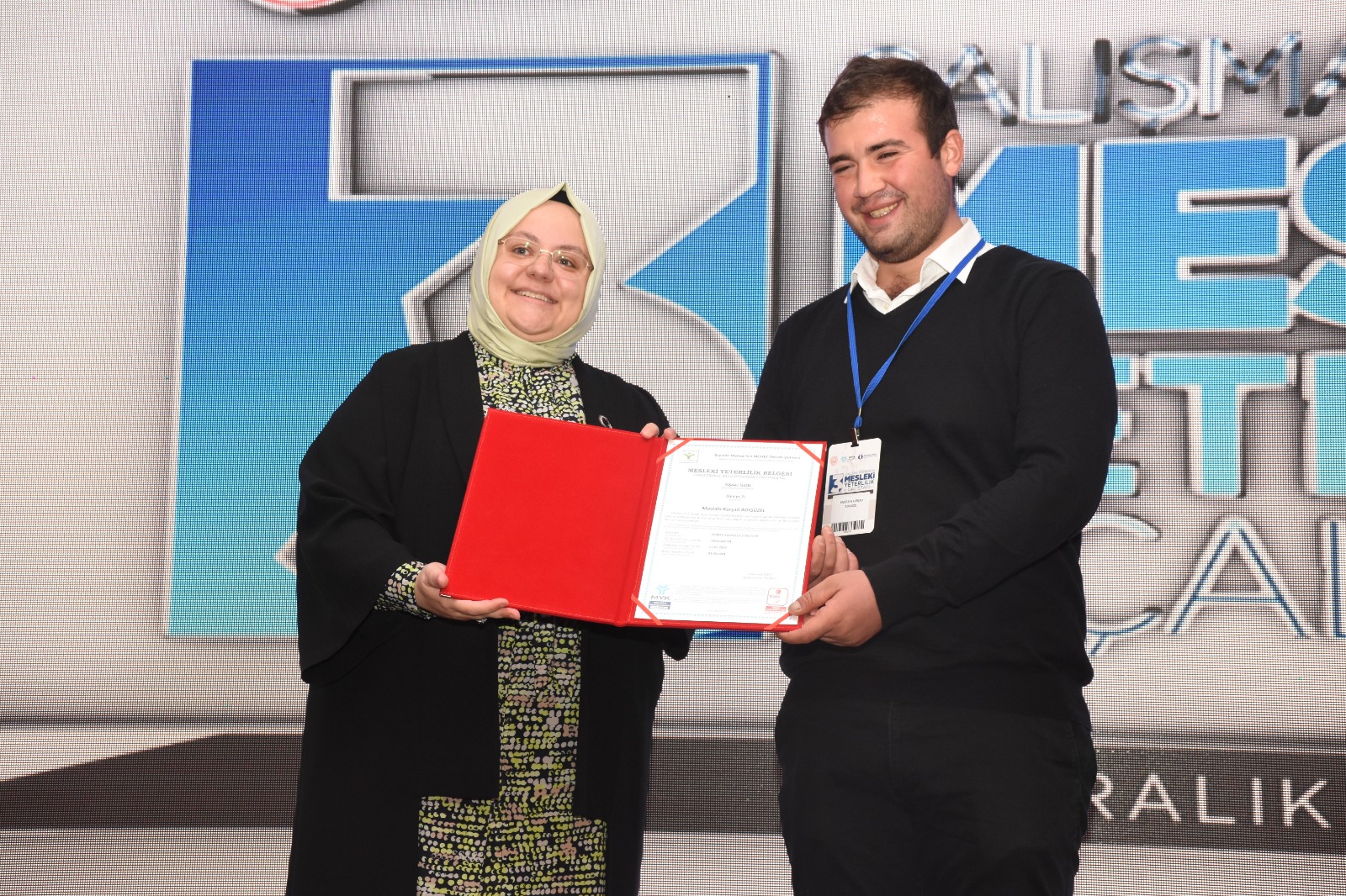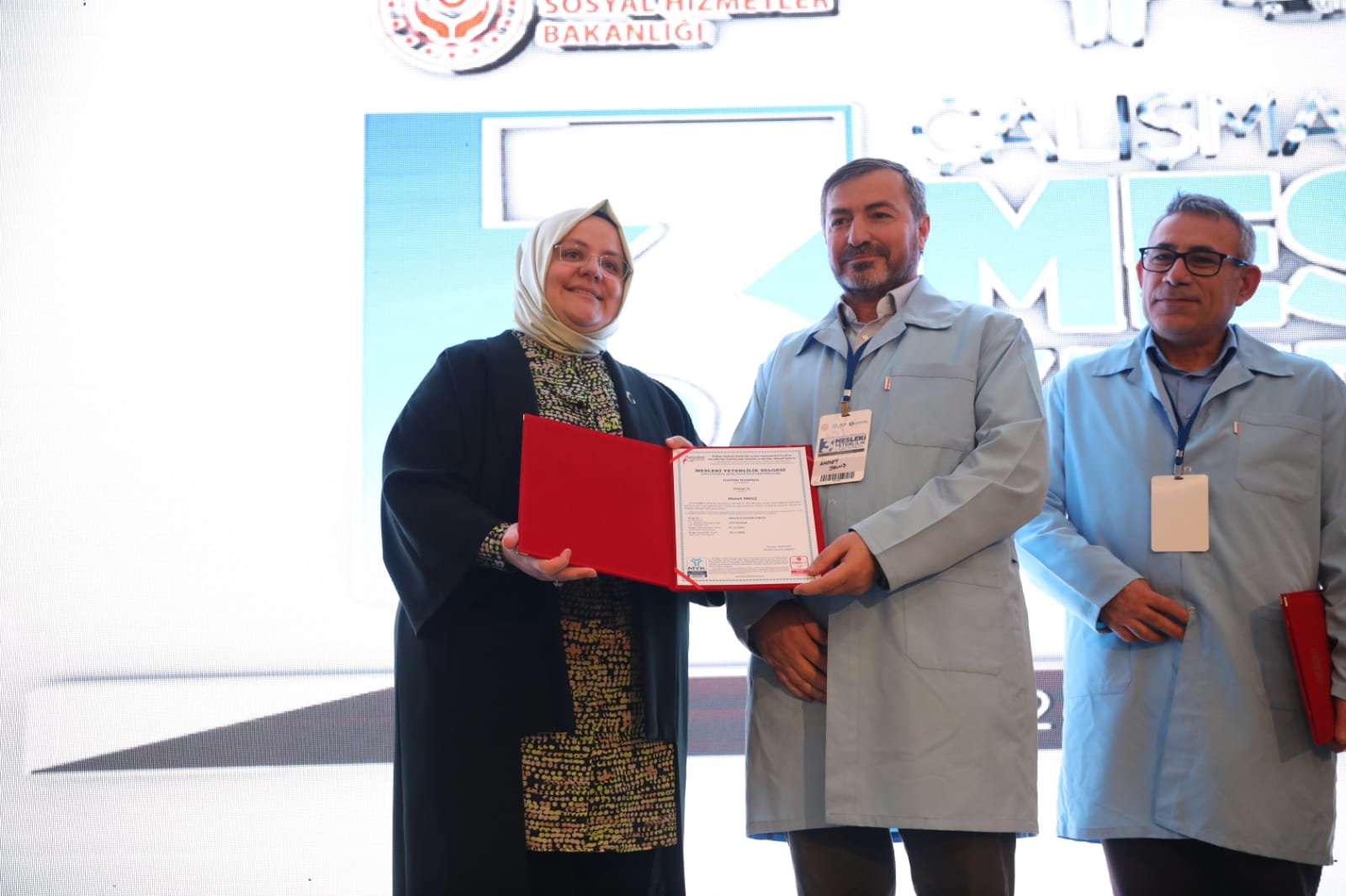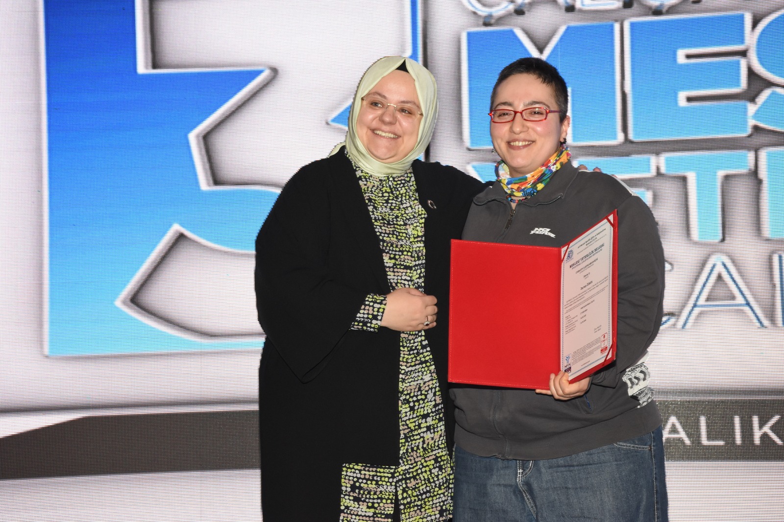 Mesleki yeterlilik belgesi almaya hak kazanan katılımcılar belgelerini Bakan Selçuk’un elinden aldı.