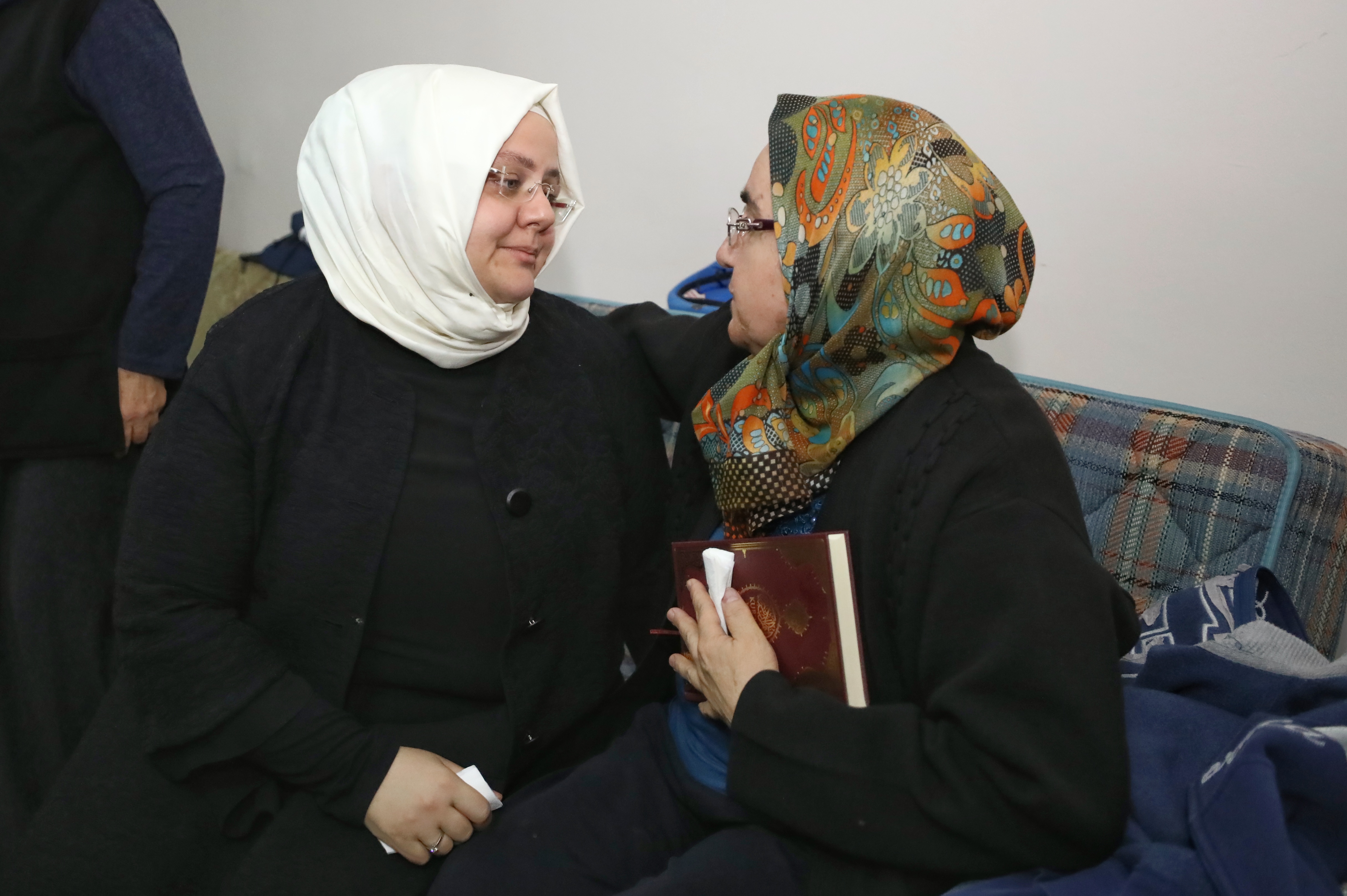 Bakan Selçuk, oğlunun fotoğrafını bir an bile elinden düşürmeyen anne Sündüz İnce’ye Türk Bayrağı ve Kur’an-ı Kerim hediye etti. Anne İnce, emanetleri öperek teslim aldı.