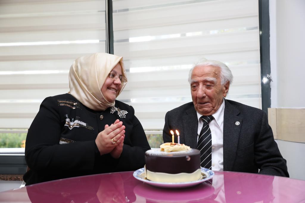 100 yaşına giren Halil Gökoğlu’na da pastayla doğum günü sürprizi yapan Bakan Selçuk, sağlıklı bir ömür diledi.