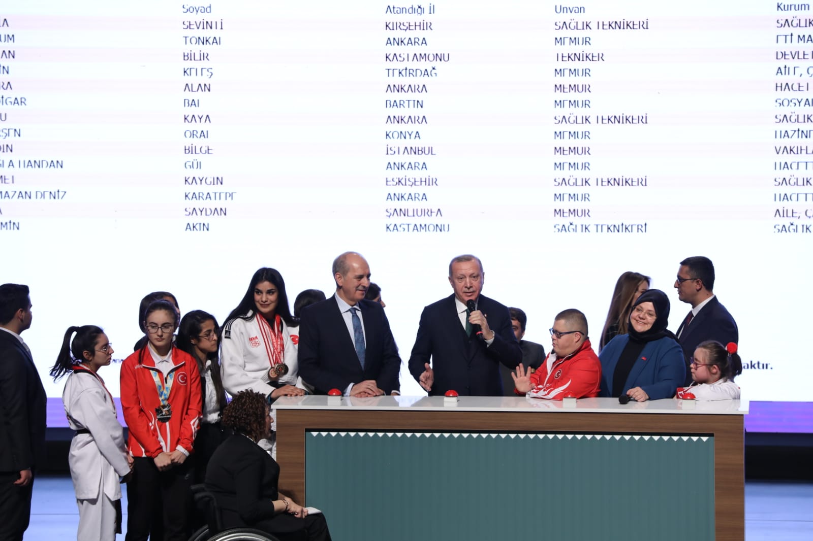 Programın sonunda Cumhurbaşkanı Erdoğan, Bakan Selçuk, engelliler ve devlet korumasında yetişen gençlerin butonlara basmasıyla atamalar gerçekleştirildi.