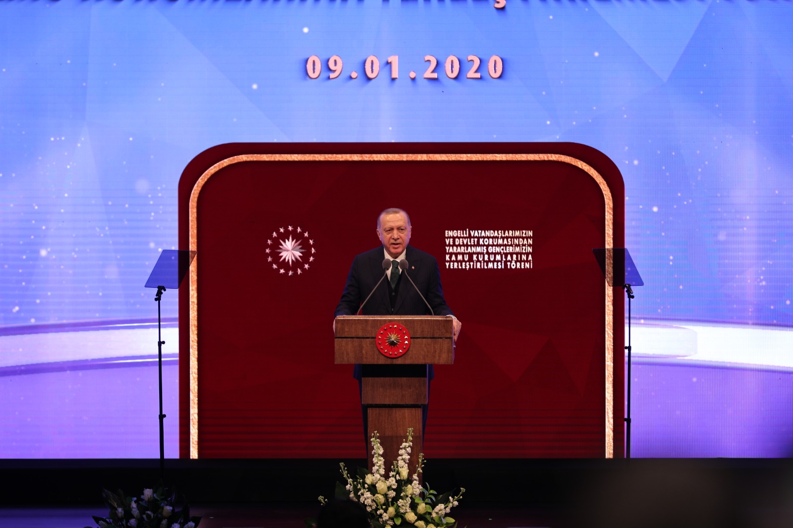 Cumhurbaşkanı Recep Tayyip Erdoğan ile Aile, Çalışma ve Sosyal Hizmetler Bakanı Zehra Zümrüt Selçuk, engelli vatandaşlarımızın ve devlet korumasından yararlanmış gençlerimizin kamu kurumlarına yerleştirilmesi törenine katıldı.