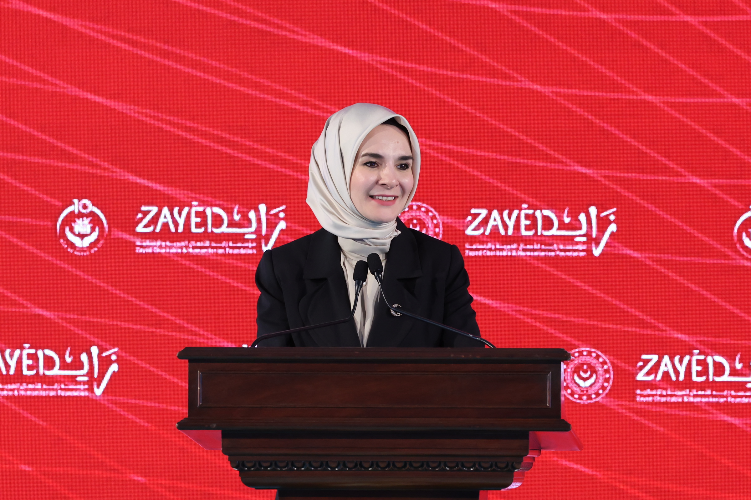 Konuşmasına, katılımcıları selamlayarak ve yurt dışından gelen misafirlere "hoş geldiniz" diyerek başlayan ve programa katılmaktan mutluluk duyduğunu ifade eden Emine Erdoğan "Bu anlamlı projenin hamisi, Altesleri Şeyha Fatıma Bint Mubarek'e en derin şükranlarımı sunduğumu ifade etmek isterim. Bugün ne yazık ki aramızda değiller ancak kalbinin ve dualarının bizlerle olduğunu biliyorum." dedi.