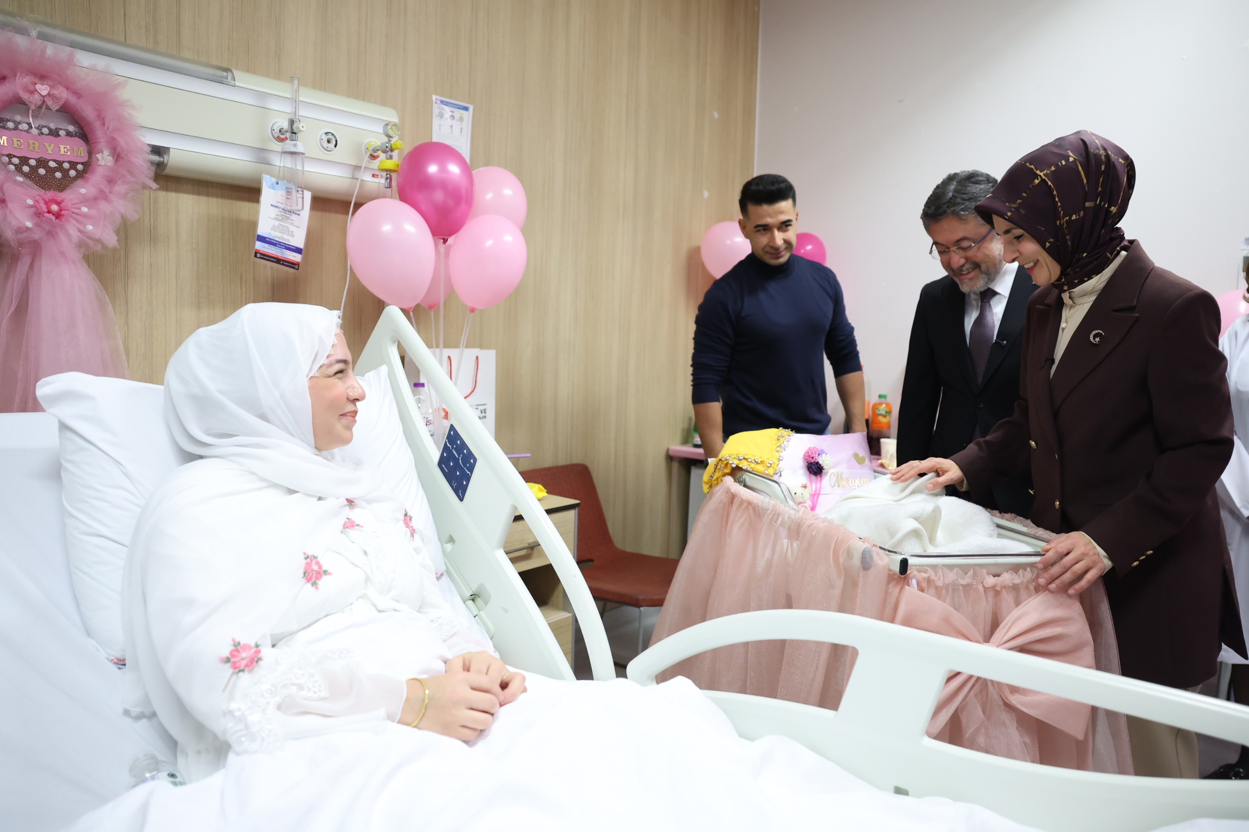 Bakan Göktaş ve Bakan Yumaklı ilk olarak üçüncü bebekleri dünyaya gelen Meryem-Yasin çiftinin bebekleri Asel’i ziyaret ederek, sağlıkla büyümesi temennisinde bulundu.