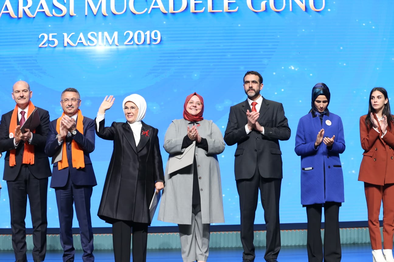 Türkiye Cumhurbaşkanı Recep Tayyip Erdoğan'ın eşi Emine Erdoğan, Cumhurbaşkanlığı Kongre ve Kültür Merkezi'nde düzenlenen 25 Kasım Kadına Yönelik Şiddete Karşı Uluslararası Mücadele Günü programında katılımcılara hitap etti.