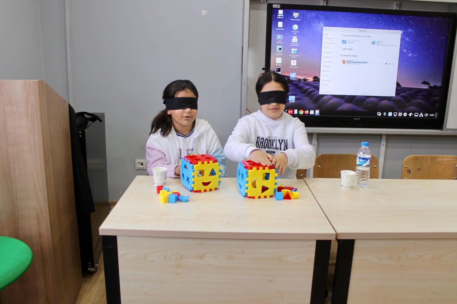 Programın devamında öğrenciler, görme engelli bireylerin yaşadığı deneyimleri birebir hissedebilmek amacıyla gözleri kapalı şekilde çeşitli uygulamalara katıldı. Bu kapsamda öğrenciler; pet şişe açma, bardağa su doldurma, farklı nesneleri yerlerine yerleştirme ve yön bulma parkuru gibi etkinlikleri deneyimledi. Yapılan uygulamalar sayesinde öğrenciler, görme engelli bireylerin günlük hayatta karşılaştıkları güçlükleri daha yakından anlama fırsatı buldu.