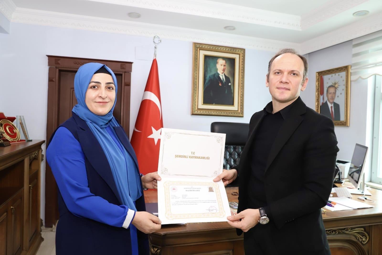 Kaymakam Akpınar, vatandaşlara zamanında ve etkin şekilde hizmet sunulmasında gösterilen gayretlerden dolayı personele başarı belgesi takdim ederek teşekkür etti.