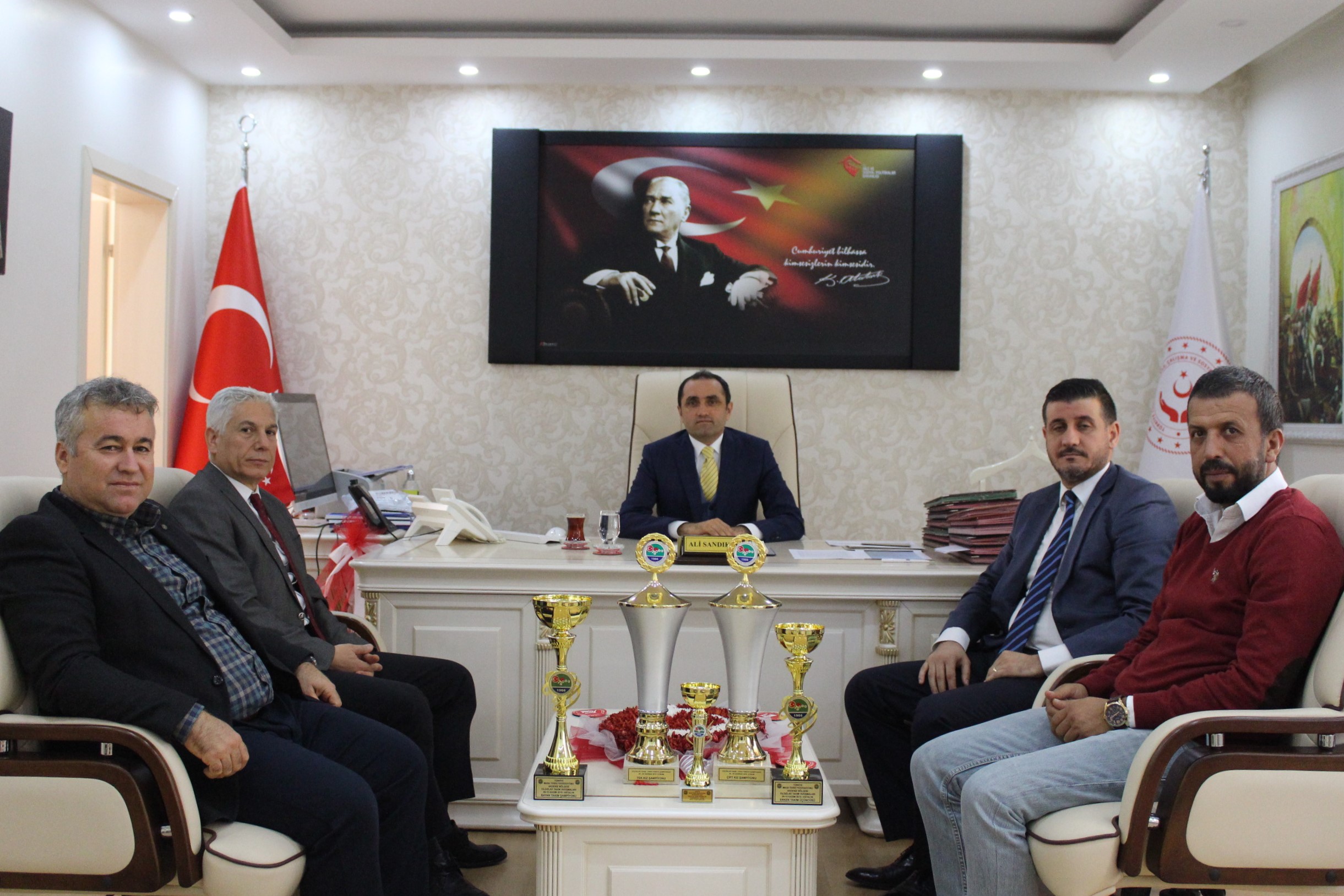 Hatay ASP Gençlik ve Spor Kulübü masa tenisi turnuvalarında göstermiş oldukları başarılarla kazanılan 5 kupa ile beraber, İl Müdürümüz Ali Sandıkçı’yı makamında ziyaret etti.