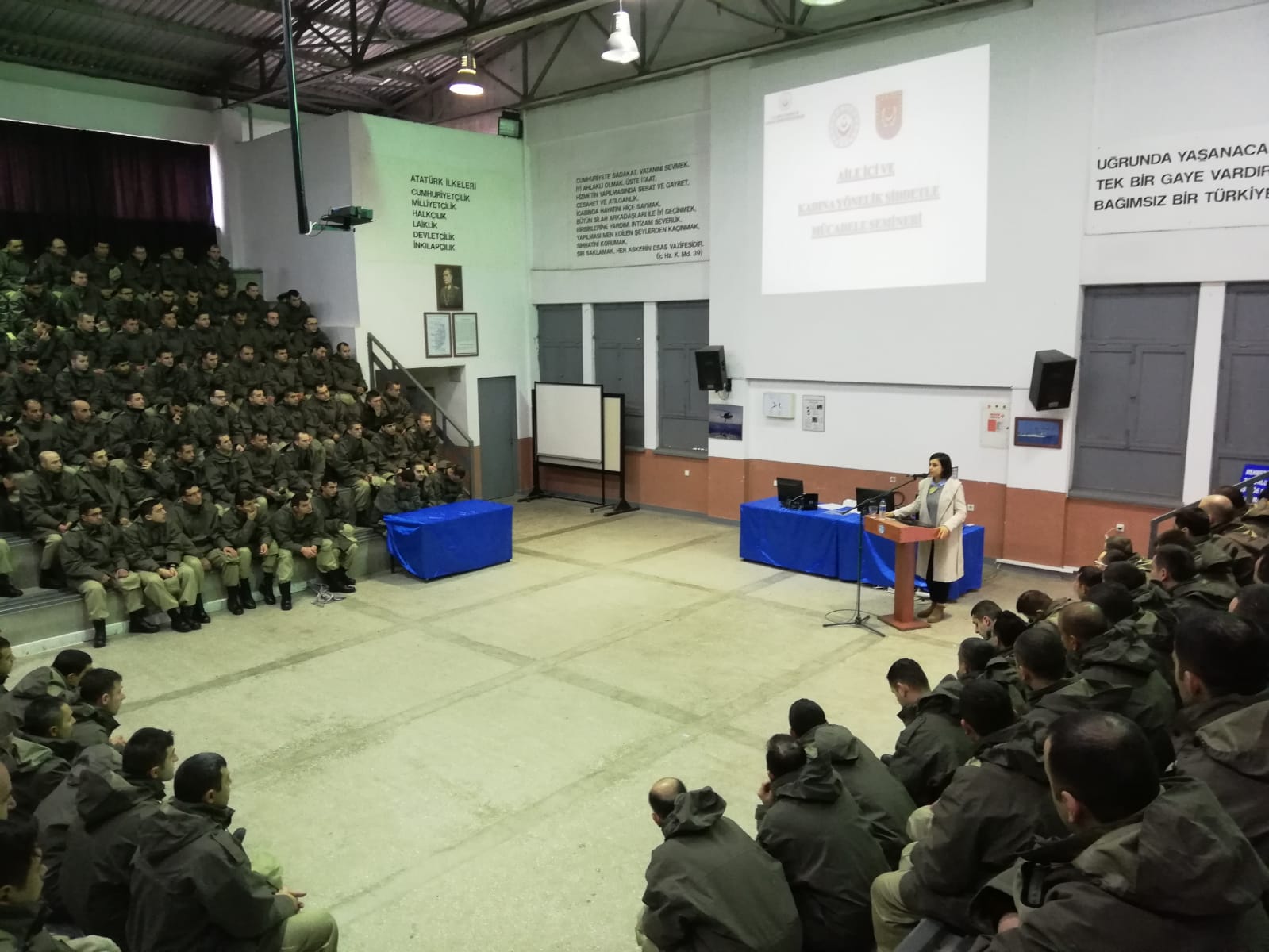 İskenderun Deniz Er Eğitim Alayı ve Dörtyol İlçe Jandarma Komutanlığında bedelli askerlik hizmetinden yararlanan 279 askere “Kadına Yönelik Şiddetle Mücadele” konulu eğitim verildi.
