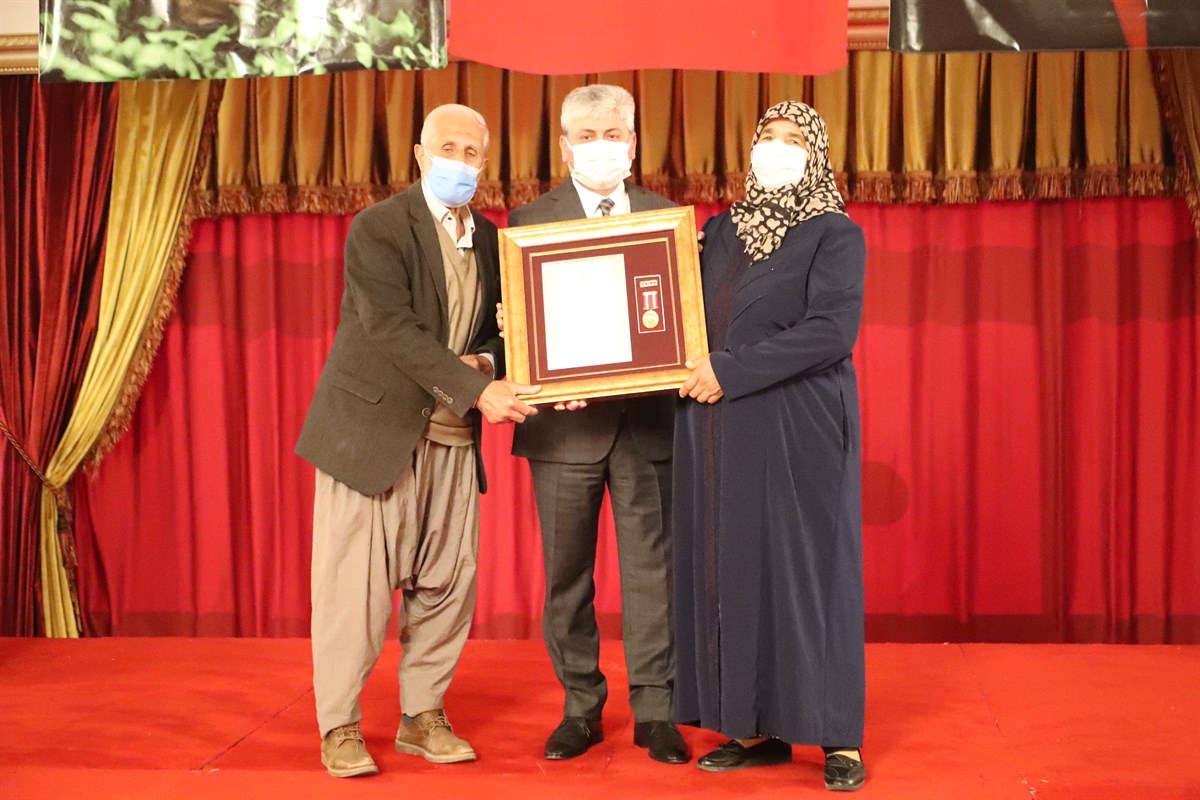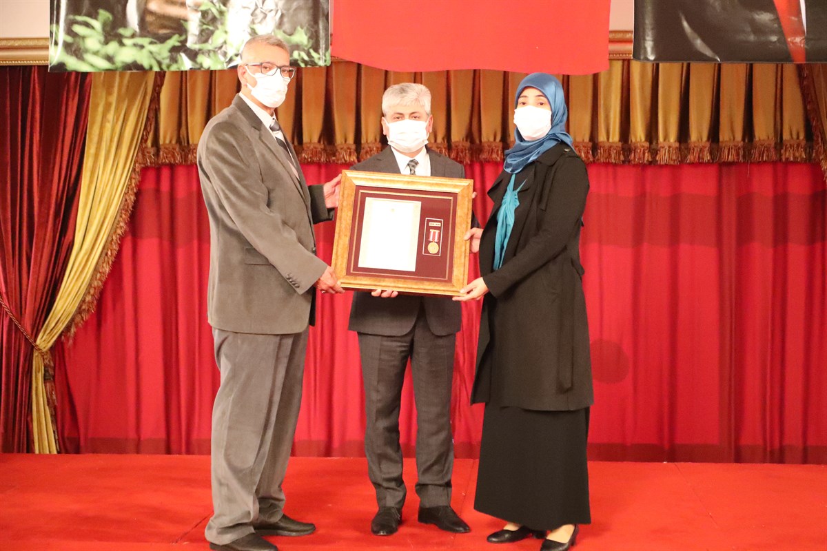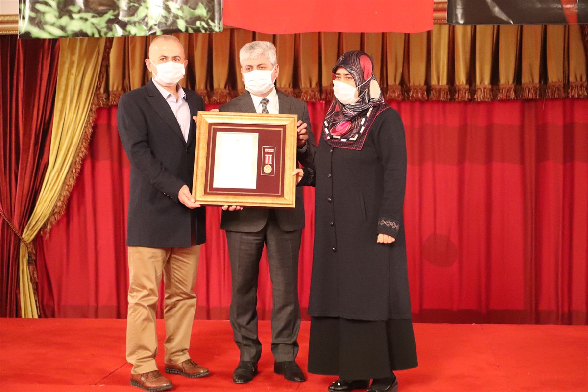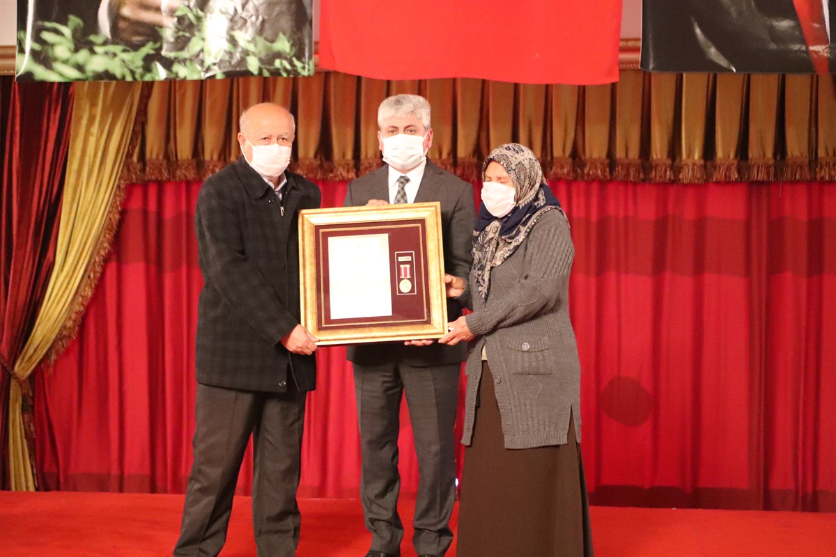 Vali Doğan’ın konuşmasının ardından Kahraman Şehitlerimiz ile Saygıdeğer Gazilerimizin kısa özgeçmişlerinin okunmasını müteakip Şehitlerimizin varislerine ve gazilerimize Devlet Övünç Madalyaları ile Beratları Vali Doğan tarafından Tevcih edildi.