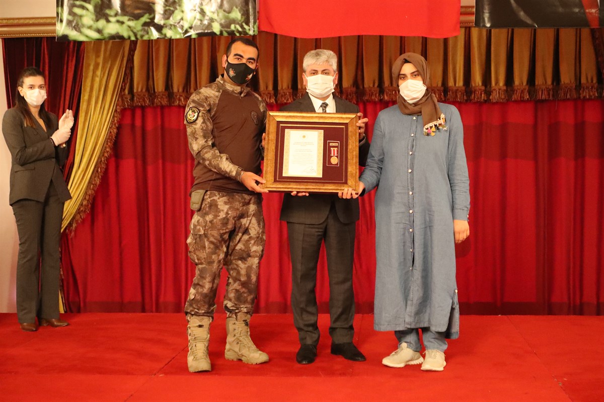18 Mart 2021 Perşembe günü saat 14.00’te düzenlenen törende, vatanın birlik ve bütünlüğünün korunması, ülkenin her köşesinde huzur ve güvenliğin sağlanması için en değerli varlıkları olan canlarını feda eden şehitlerimizin yakınlarına ve saygı değer gazilerimiz için Ottoman Otel’de “Devlet Övünç Madalyası ve Beratı Tevcih Töreni” düzenlendi.