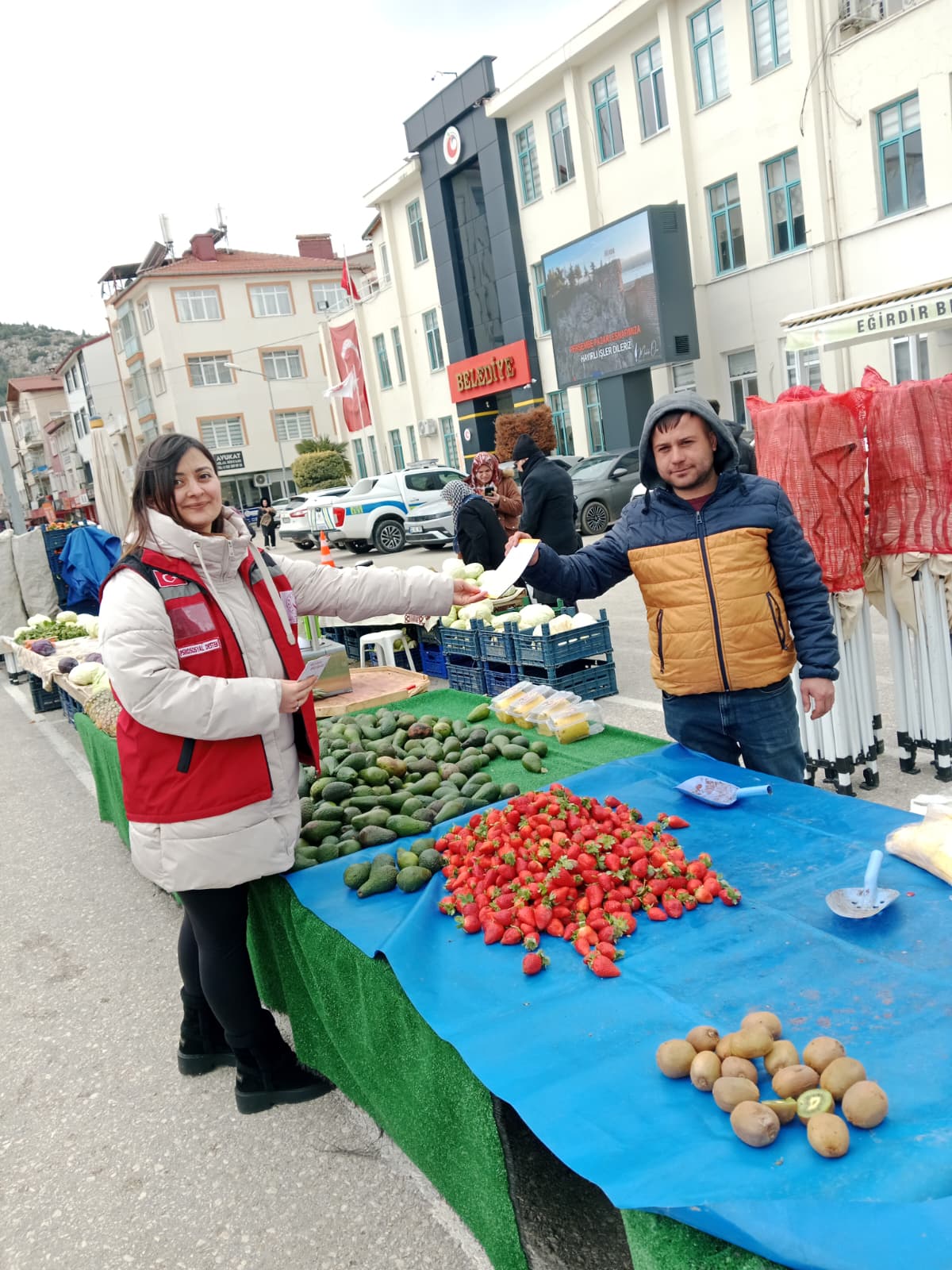 Eğirdir Sosyal Hizmet Merkezimizde görevli çalışma arkadaşlarımız tarafından pazar esnafı ve vatandaşlarımıza yönelik Kadına Yönelik Şiddetle Mücadele kapsamında farkındalık çalışmaları yapıldı; Bakanlığımızın hizmet alanlarına ilişkin broşürler eşliğinde bilgilendirme gerçekleştirildi.