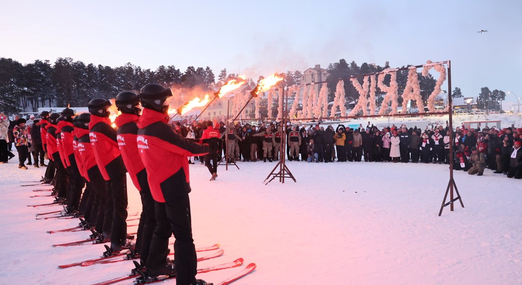 Bakan Göktaş, ardından Sarıkamış Harekatı'nın 111. yılı etkinlikleri kapsamında Jandarma Arama Kurtarma (JAK) timleri ve komandolar meşaleli kayak gösterisini izledi.