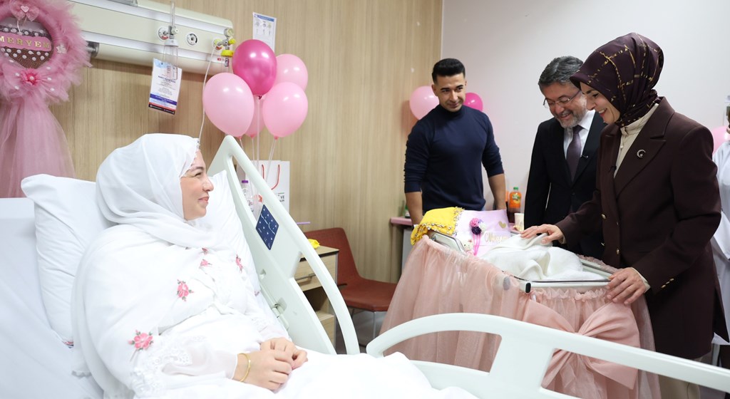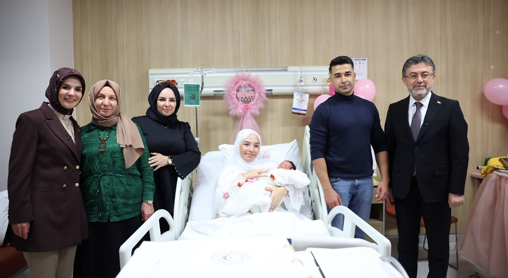 Bakan Göktaş ve Bakan Yumaklı ilk olarak üçüncü bebekleri dünyaya gelen Meryem-Yasin çiftinin bebekleri Asel’i ziyaret ederek, sağlıkla büyümesi temennisinde bulundu.