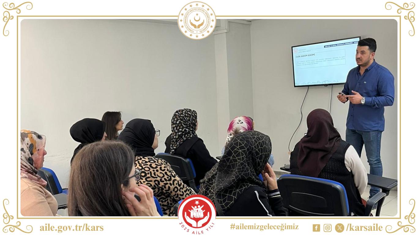 İl Müdürlüğümüze bağlı Kars Sosyal Hizmet Merkezi Müdürlüğü tarafından, Aile Destek Personelleri ve kursiyerlere yönelik Bakanlığımız ve Sosyal Hizmet Merkezi faaliyetleri hakkında tanıtım ve bilgilendirme sunumu gerçekleştirilmiştir.