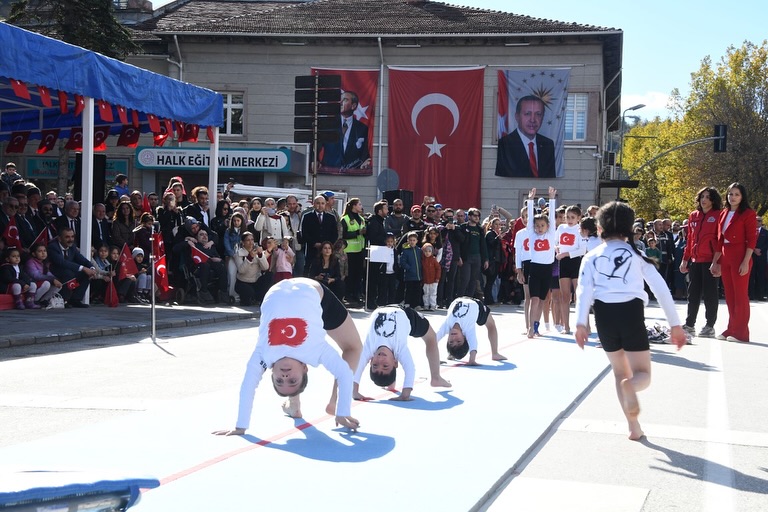 ayyip Erdoğan’ın mesajı okundu. Sayın Valimizin konuşması sonrası, öğrencilerin şiirleri, halk oyunları, spor gösterileri ve müzik dinletisi yer aldı. Komando Eğitim Merkezi’nin dövüş sanatları gösterisi ve gösteri birliği’nin performansı büyük beğeni topladı. Program, bando eşliğinde yapılan tören geçişiyle sona erdi.