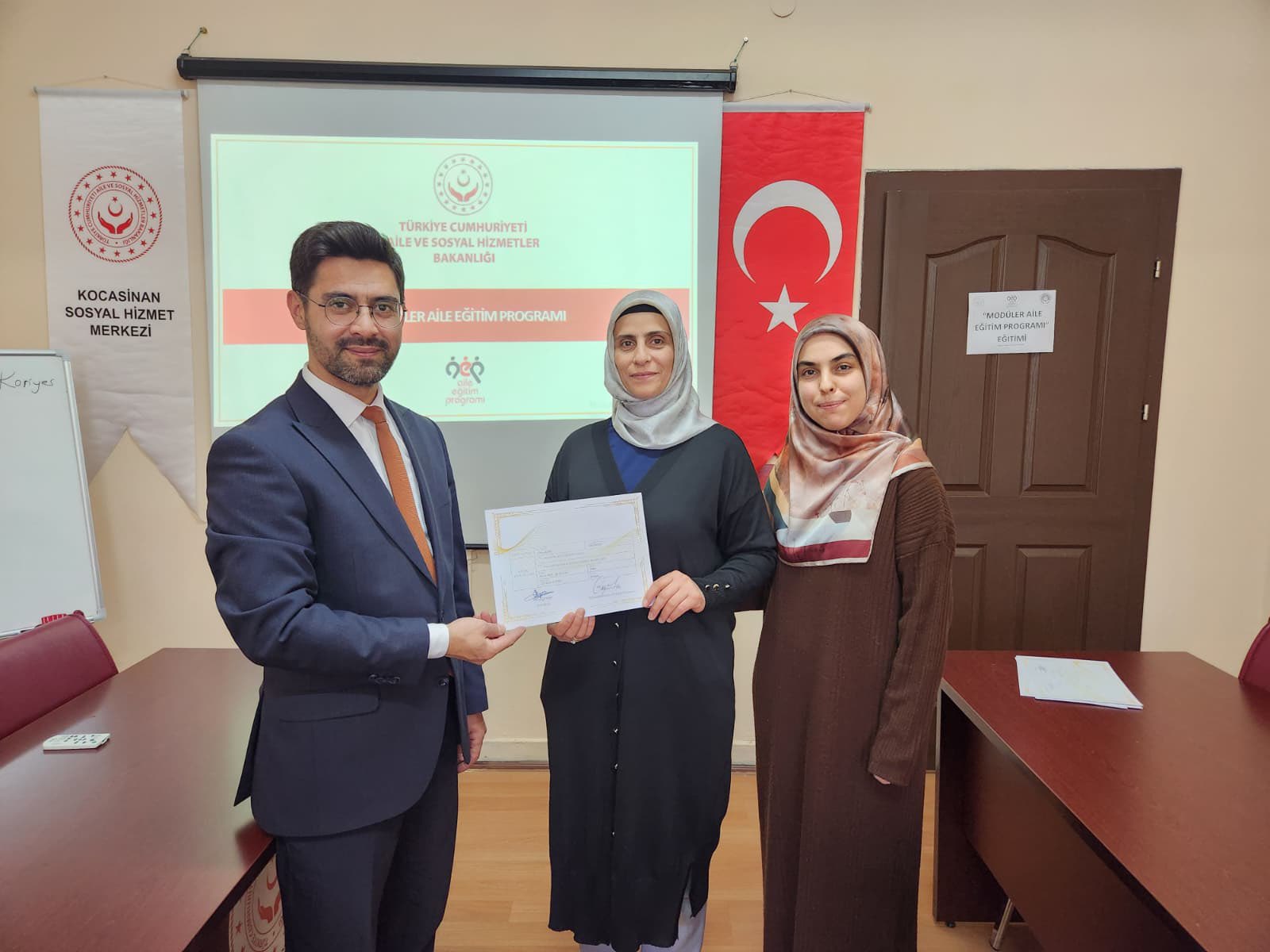 İl Müdürlüğümüze bağlı Kocasinan Sosyal Hizmet Merkezi Müdürlüğünde, 9 hafta boyunca sürdürülen Modüler Aile Eğitim Programı’nın birinci grup eğitimleri başarıyla tamamlandı. Programa katılım sağlayan vatandaşlarımıza katılım belgeleri takdim edildi.