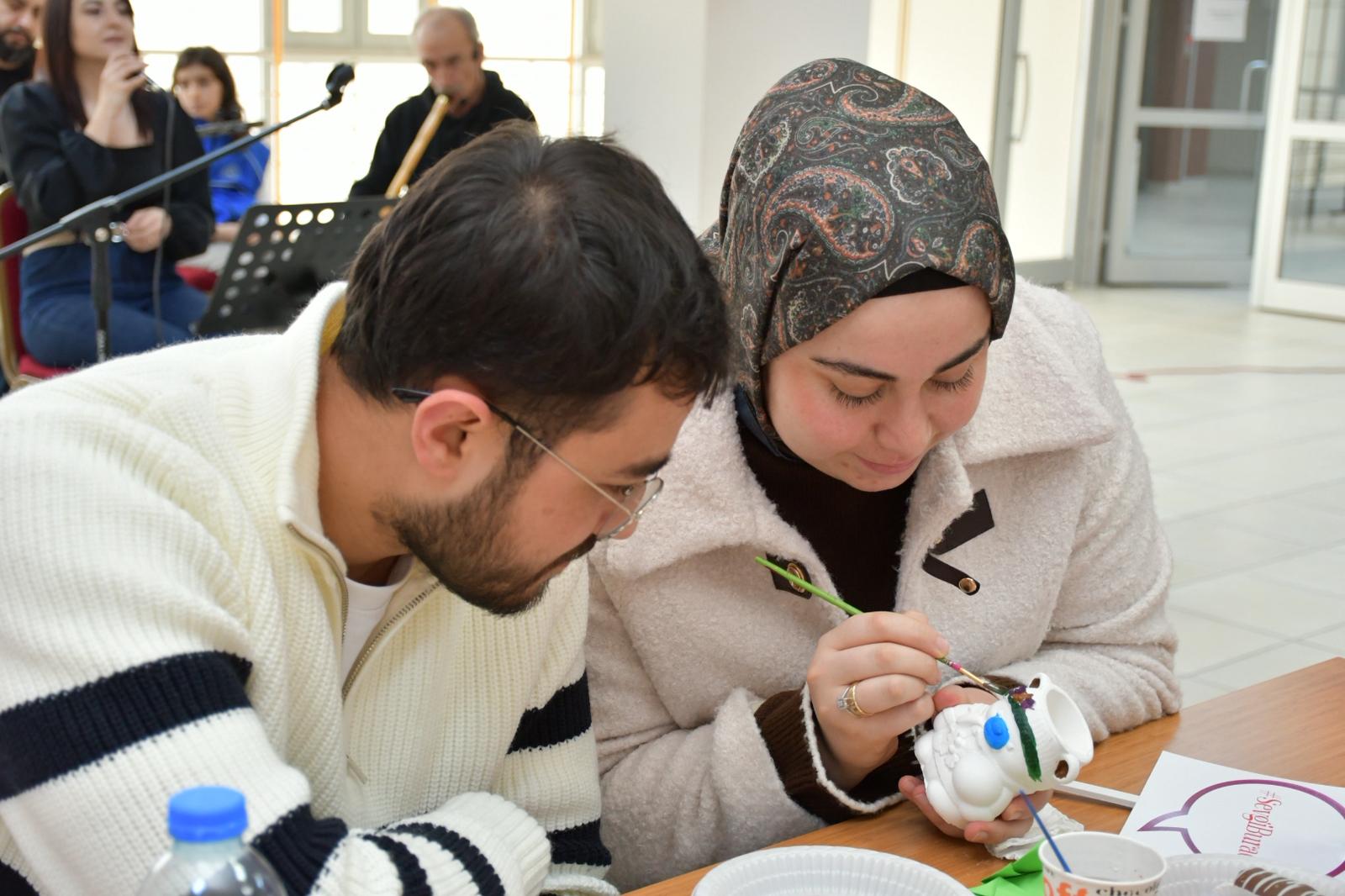 Aile ve Nüfus On Yılı kapsamında düzenlenen Aile Buluşmaları programımız, “Renkli An’lar: Aile ve Yuva” obje boyama etkinliği ile devam etti. Genç çiftlerimiz, kendi yuvalarını simgeleyen objeleri birlikte boyayarak hem üretmenin hem de paylaşmanın mutluluğunu yaşadı. Etkinlik, çiftler arasında keyifli bir etkileşim ortamı oluşturdu.