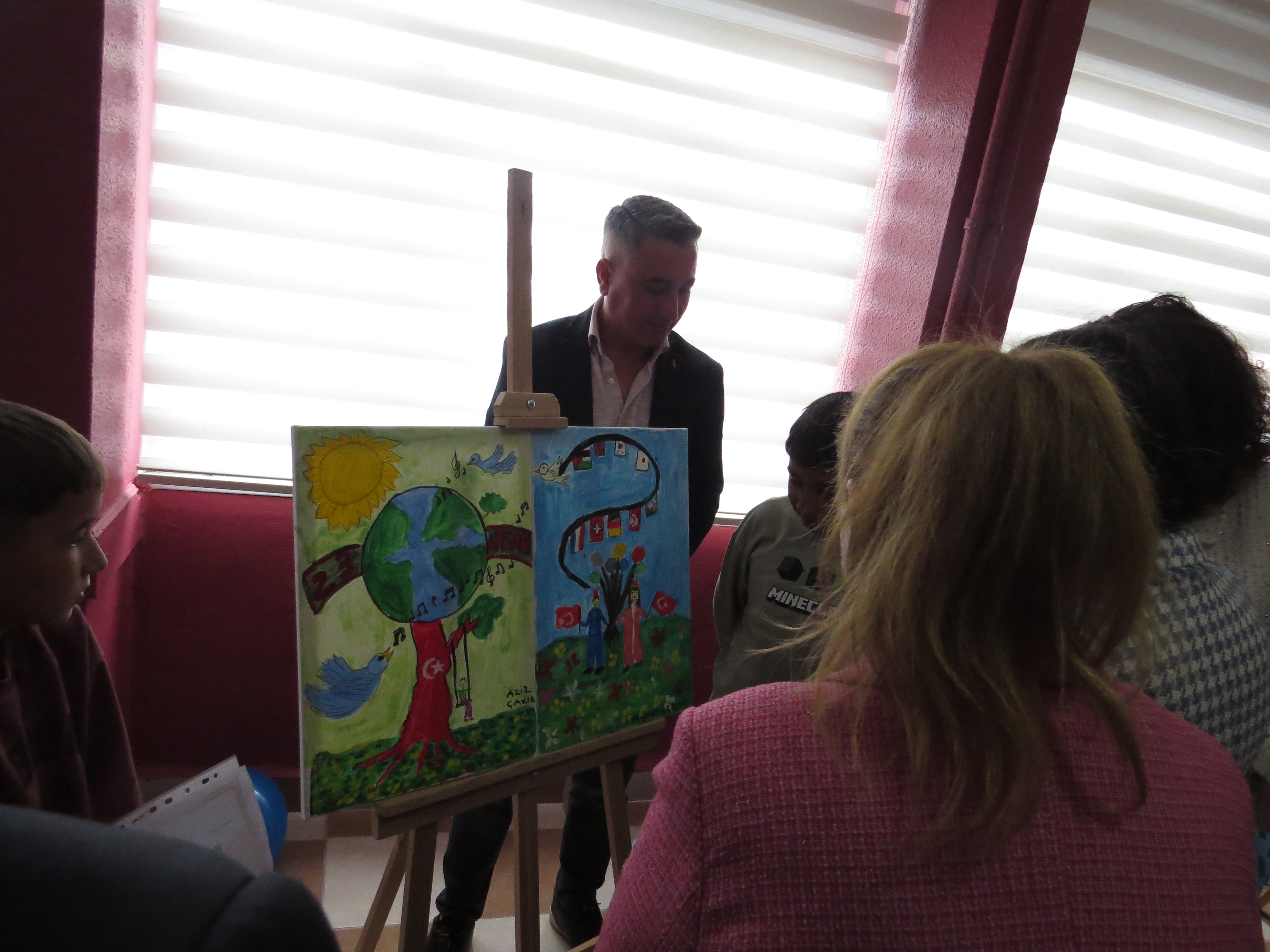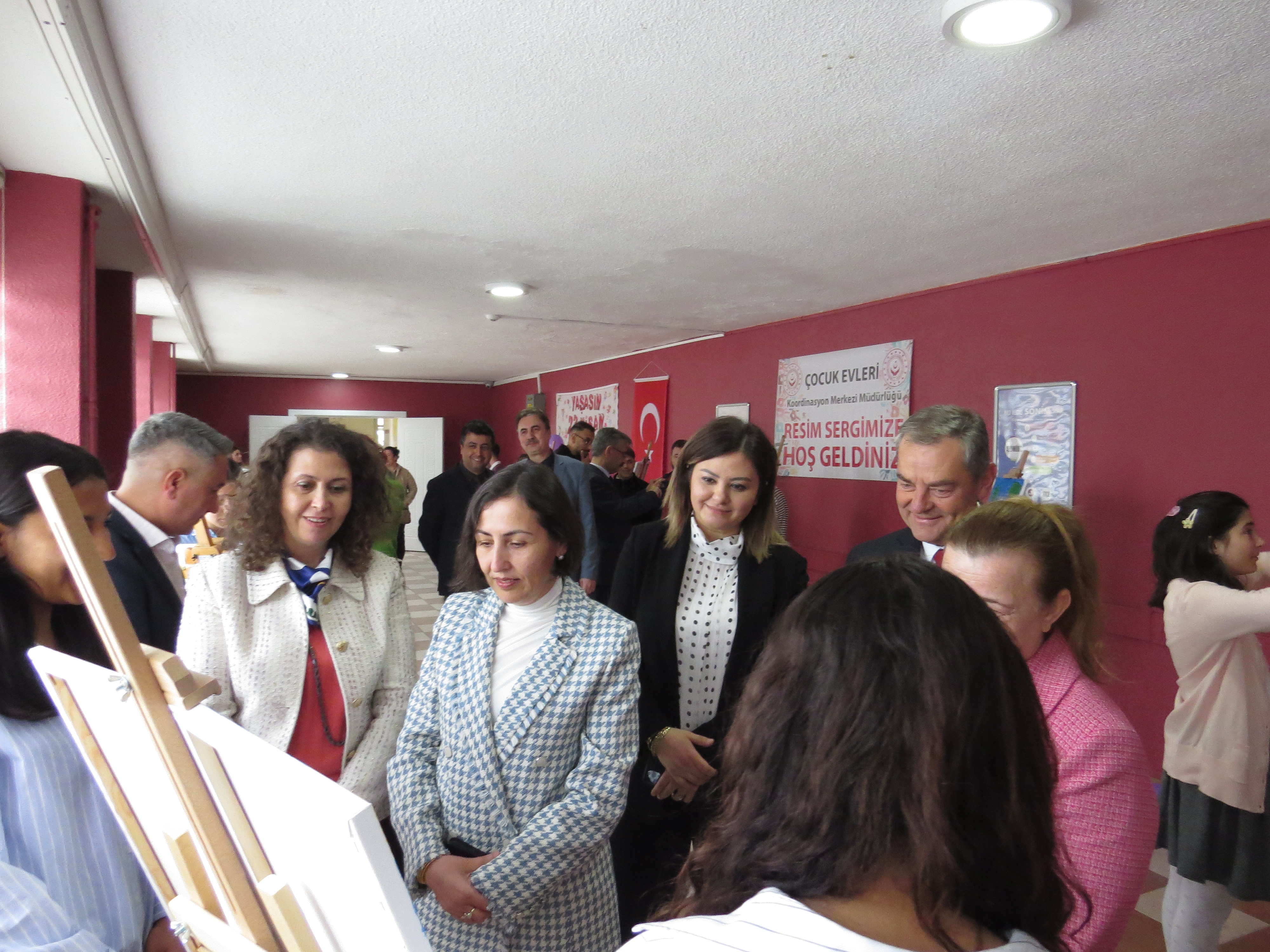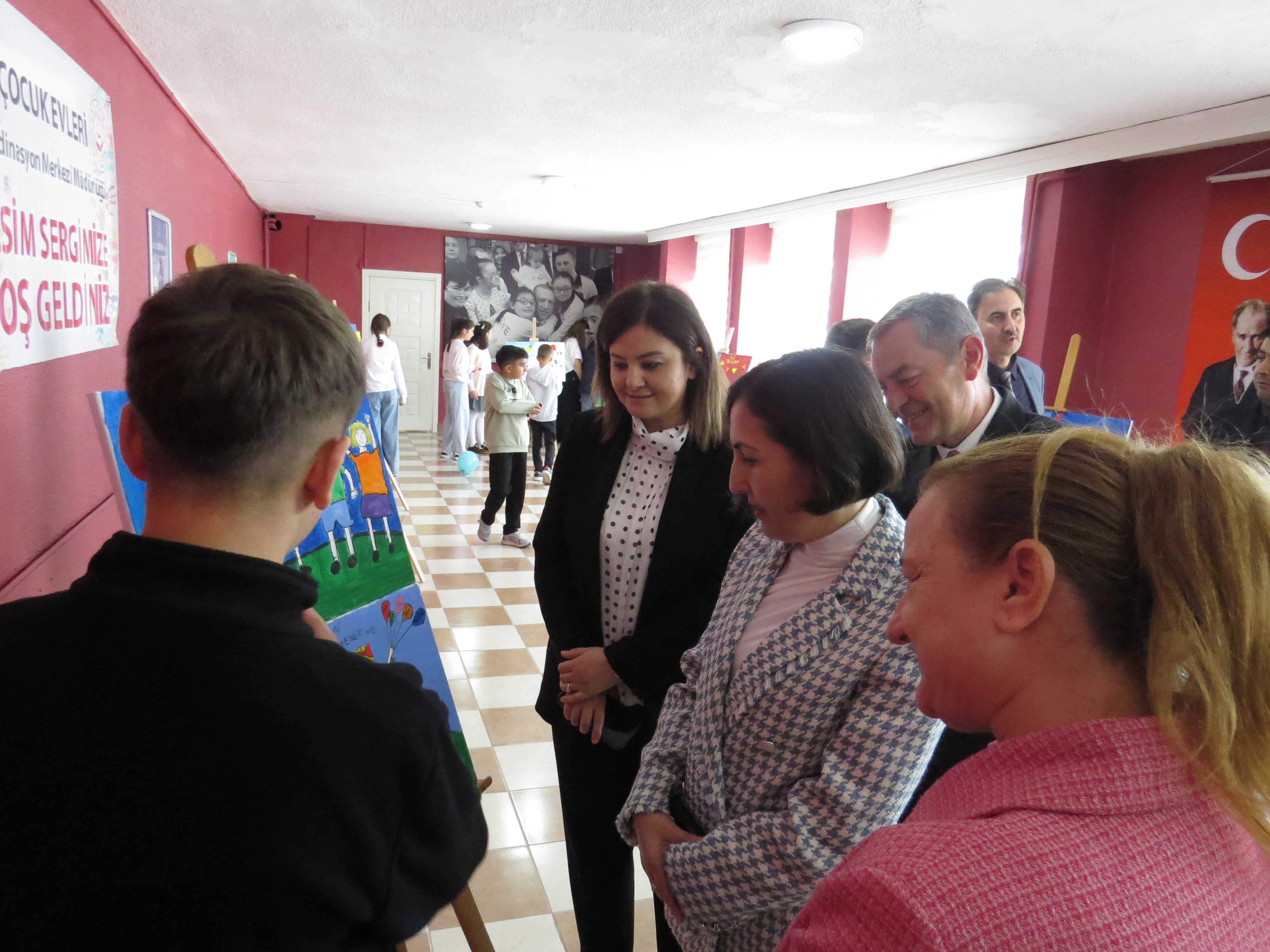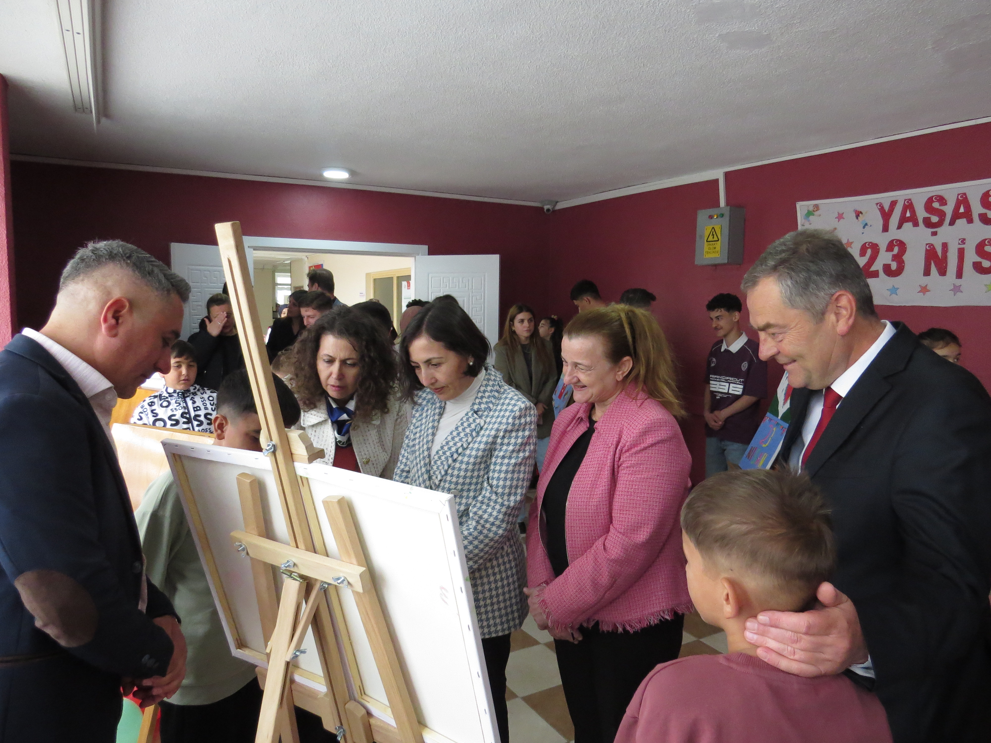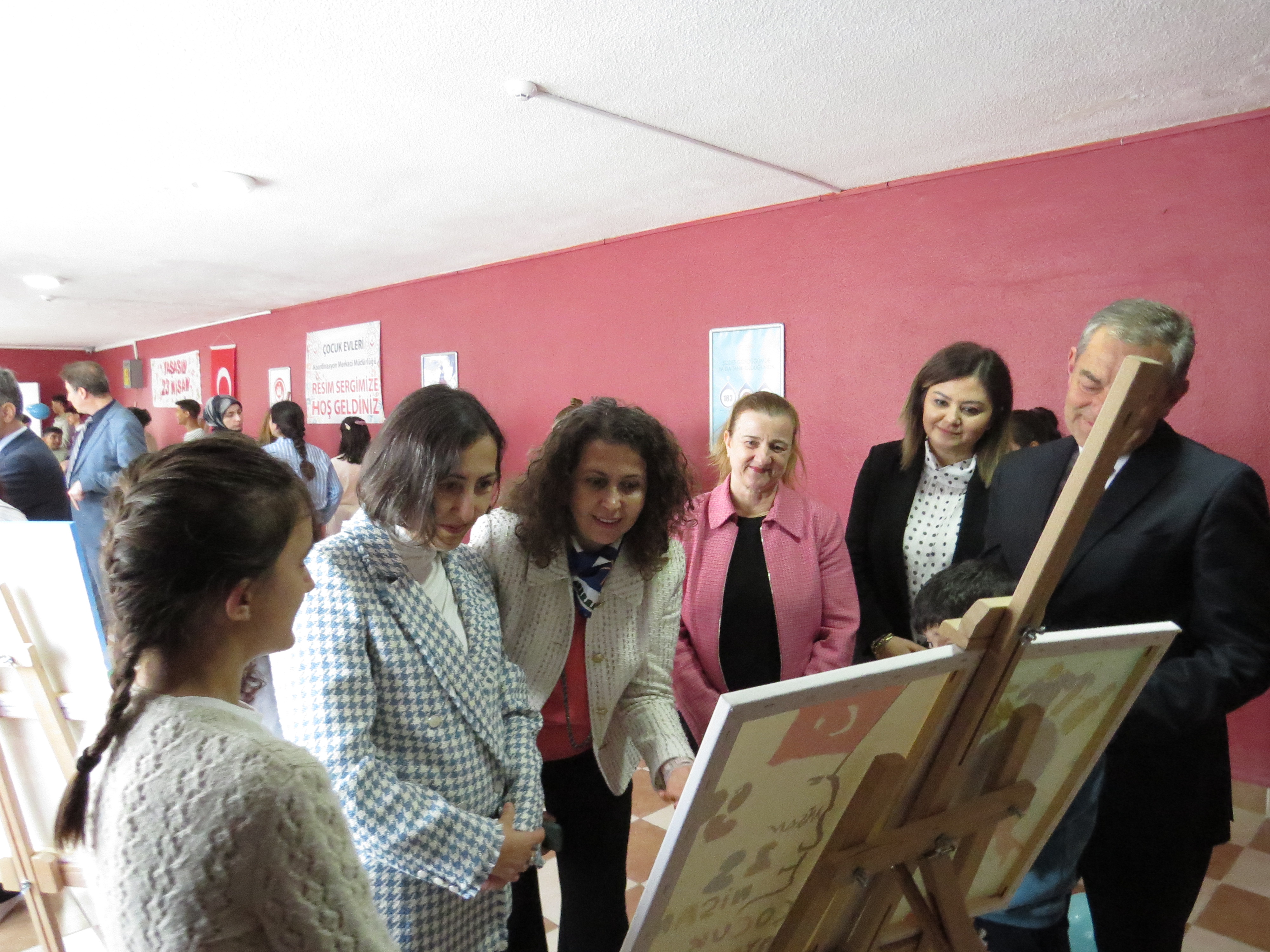 Program, açılış kurdelesinin kesilmesinin ardından serginin gezilmesi ve çocuklarımızın hazırladığı resimlerin tek tek incelenmesiyle devam etmiş; çocuklarımızın 23 Nisan Ulusal Egemenlik ve Çocuk Bayramı coşkusu hep birlikte paylaşılmıştır.