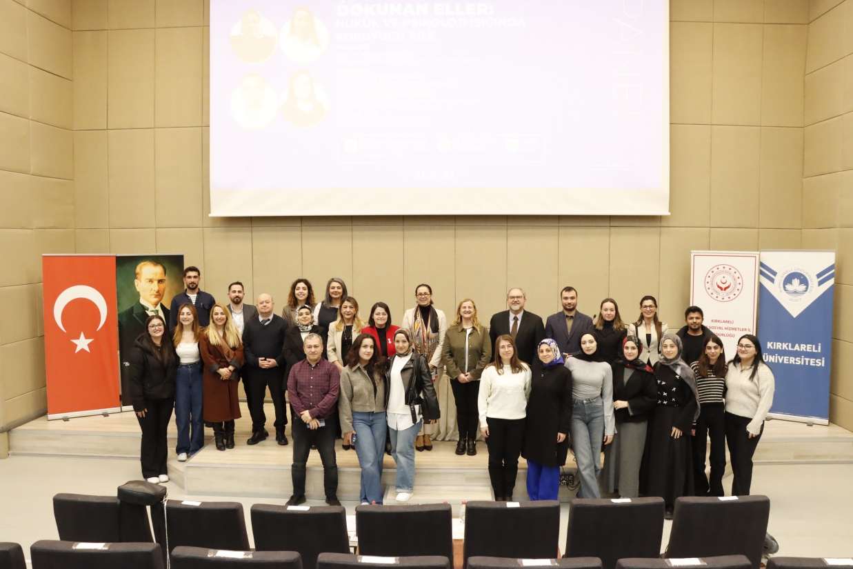 Kırklareli Aile ve Sosyal Hizmetler İl Müdürlüğü ile Kırklareli Üniversitesi iş birliğinde, 18 Aralık 2025 Perşembe günü “Çocuğun Hayatına Dokunan Eller: Hukuk ve Psikoloji Işığında Koruyucu Aile” başlıklı panel düzenlendi. Panel, Kırklareli Üniversitesi 3. Merkezi Derslik Binası Prof. Dr. Mustafa Aykaç Konferans Salonu’nda gerçekleştirildi.