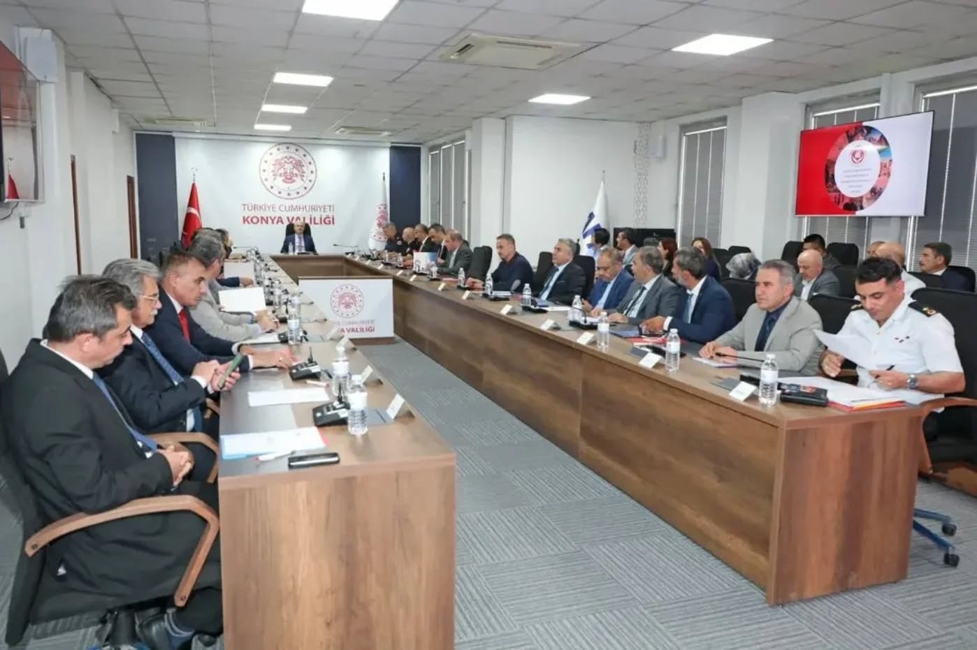 Valilik Toplantı Salonu’nda gerçekleştirilen toplantıya Valimiz İbrahim Akın’ın yanı sıra; İl Jandarma Komutanı Tümgeneral Cemil Lütfi Özkul, KTO Karatay Üniversitesi Rektörü Prof. Dr. Fevzi Rifat Ortaç, Konya Teknik Üniversitesi Rektörü Prof. Dr. Osman Nuri Çelik, Vali Yardımcısı Fatmagül Dalmış, İl Emniyet Müdürü Maksut Yüksek, İl Müdürümüz Abdullah Neşeli, kurum müdürleri ile ilgili kurum ve kuruluş temsilcileri katıldı.