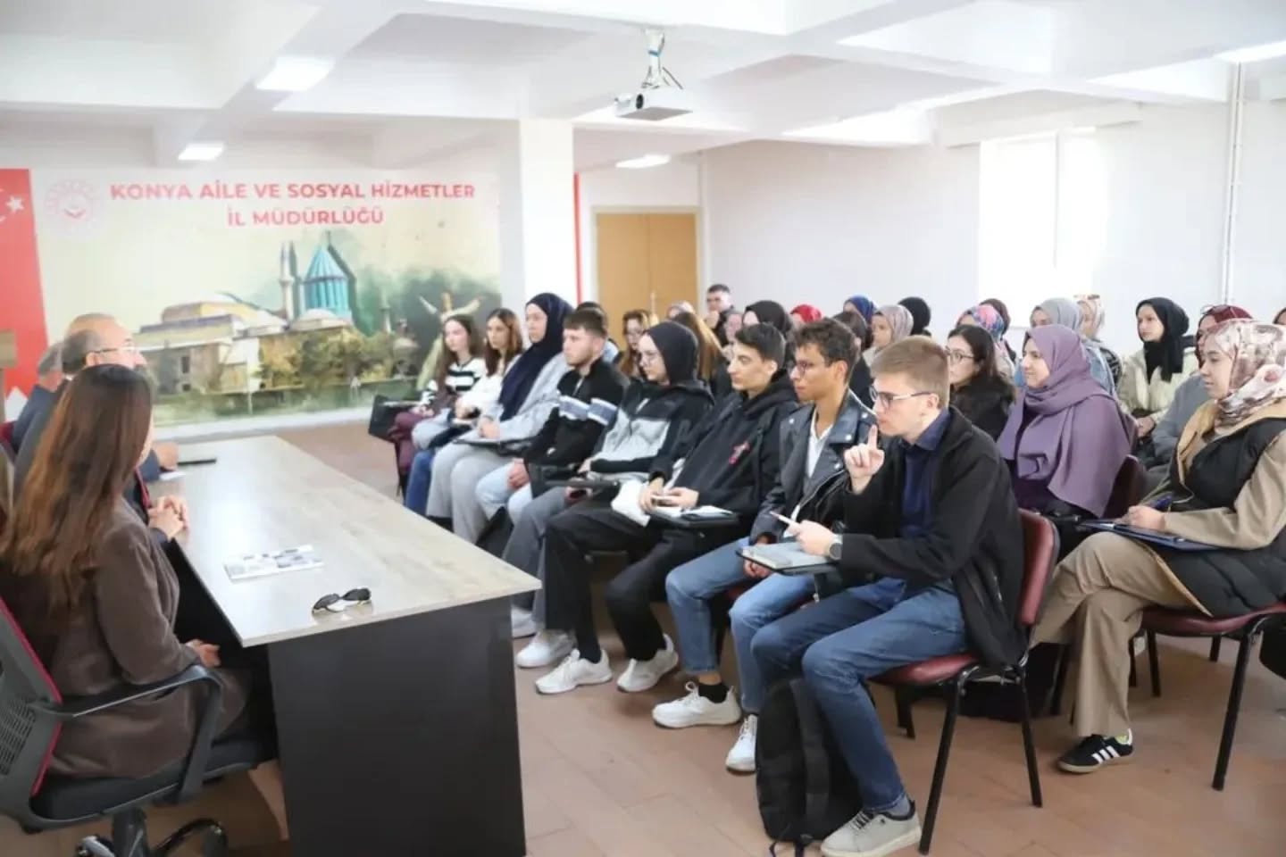 İl Müdürümüz Sayın Abdullah Neşeli, KTO Karatay Üniversitesi Sosyal Hizmetler bölümü birinci sınıf öğrencileri ile bir araya geldi. Yapılan görüşmede sosyal hizmet bölümüne yeni başlayan öğrencilere "bireylerin, ailelerin, grupların ve toplumun iyilik halini artırmak için sosyal değişime, insan ilişkilerinde sorun çözmeye, güçlenmeye" katkı sağlayan sosyal hizmet mesleği hakkında bilgiler aktarıldı.