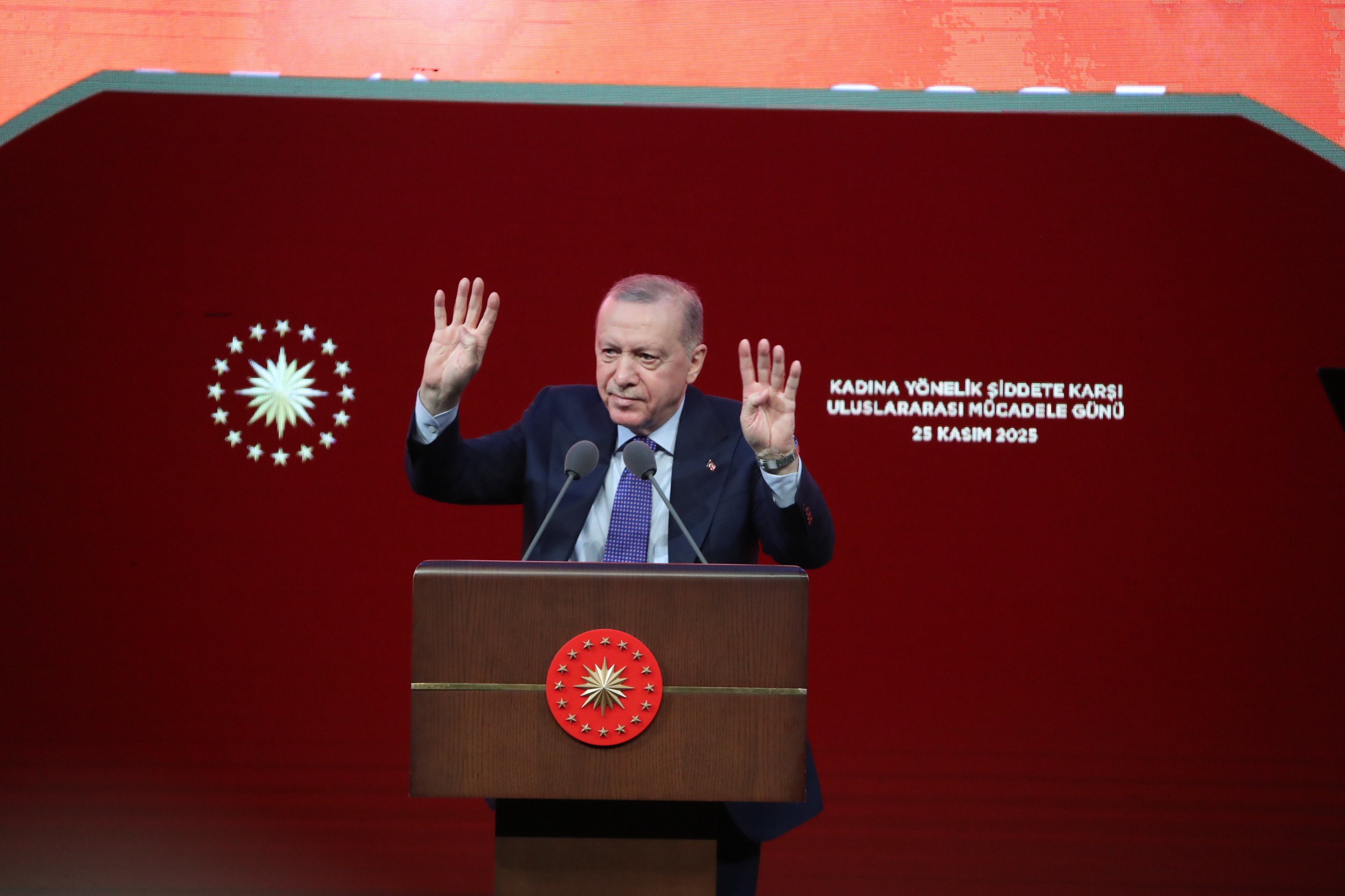 Cumhurbaşkanı Recep Tayyip Erdoğan ve Aile ve Sosyal Hizmetler Bakanı Mahinur Özdemir Göktaş’ın katılımıyla Beştepe Millet Kongre ve Kültür Merkezi'nde "Kadına Yönelik Şiddete Karşı Uluslararası Mücadele Günü" programı düzenlendi.