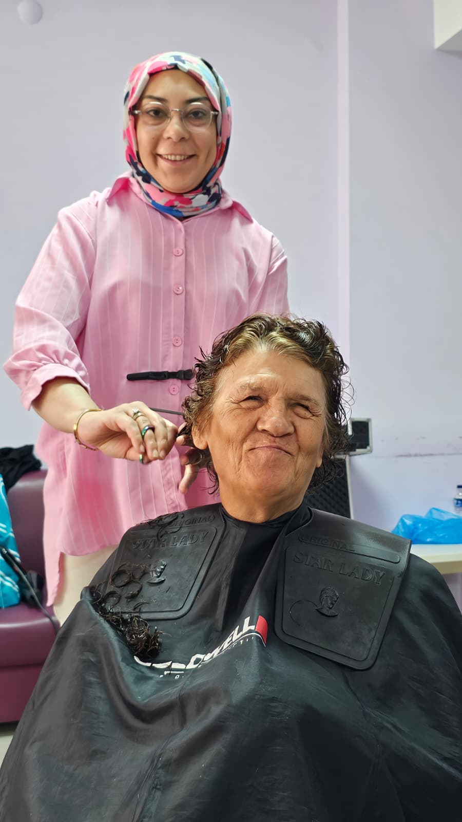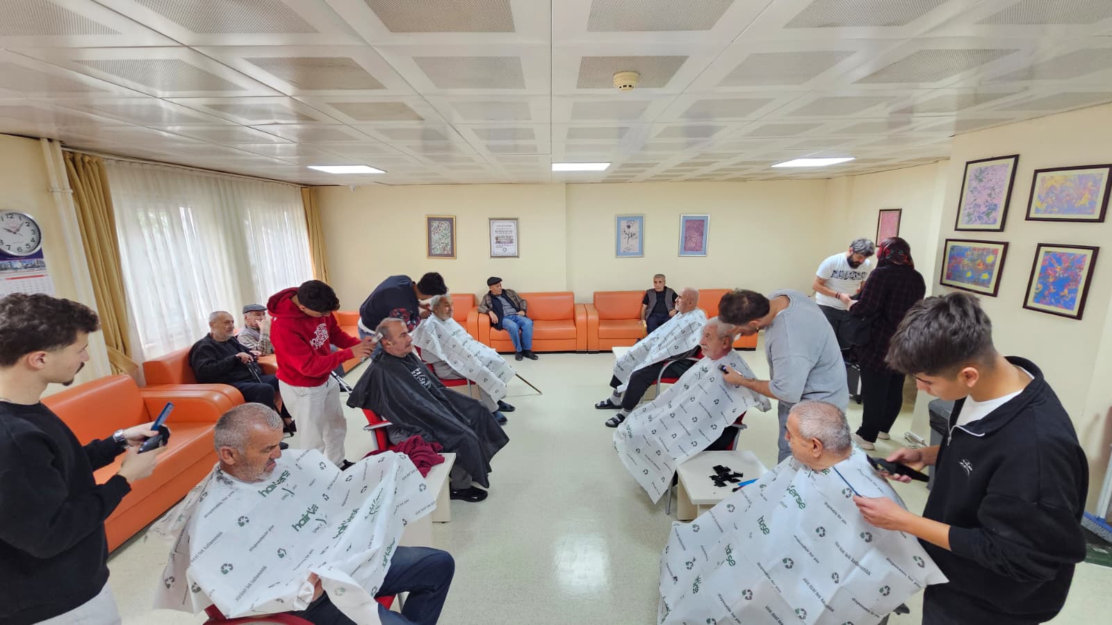 Müdürlüğümüze bağlı Huzurevi Yaşlı Bakım ve Rehabilitasyon Merkezini ziyaret eden hayırsever kuaförler, huzurevi sakinlerimizin saç bakımlarını gerçekleştirerek onlara keyifli anlar yaşattılar.