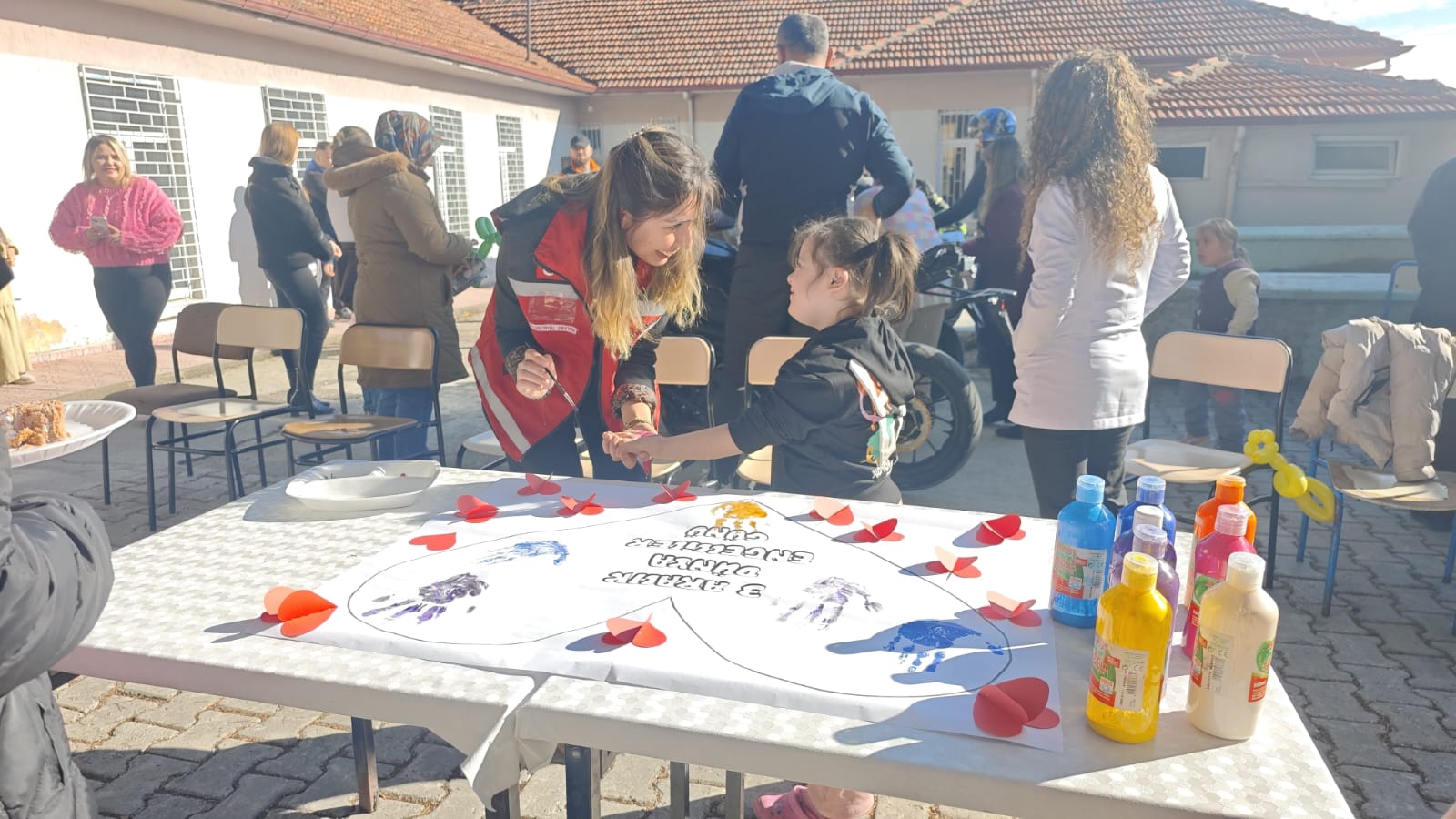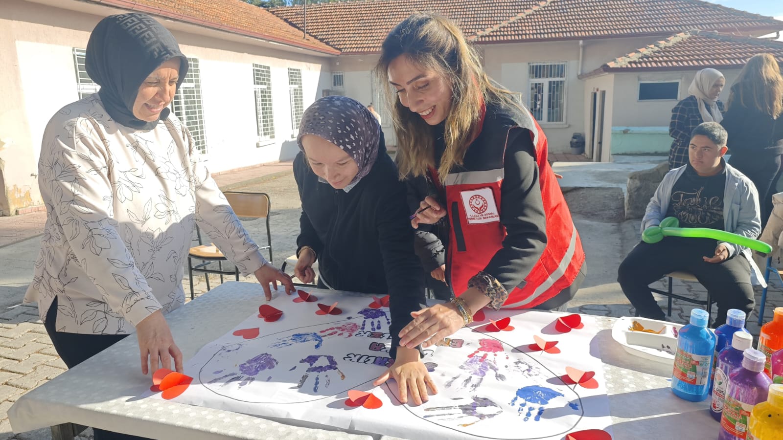 Ziyarette, öğrencilerle birlikte el baskısı etkinliği gerçekleştirildi.
