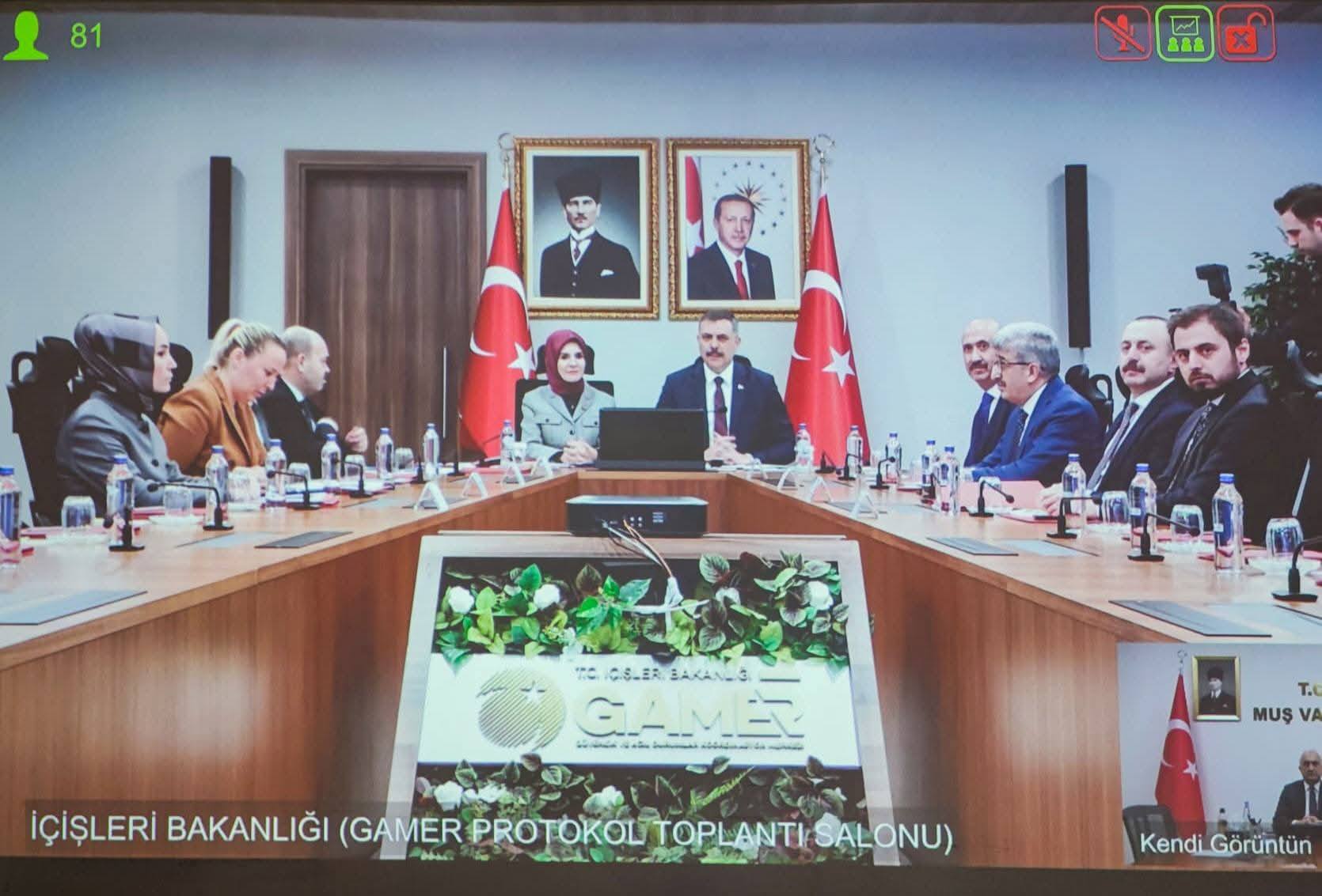 Valimiz Sayın Avni Çakır, Muş Aile ve Sosyal Hizmetler İl Müdürümüz Sayın Ahmet Kırtay ile birlikte, İçişleri Bakanımız Sayın Mustafa Çiftçi ve Aile ve Sosyal Hizmetler Bakanımız Sayın Mahinur Özdemir Göktaş başkanlığında Video Konferans Sistemi (VKS) üzerinden gerçekleştirilen “Sosyal Risk Haritaları Saha Çalışmaları” konulu toplantıya katılım sağlamıştır.