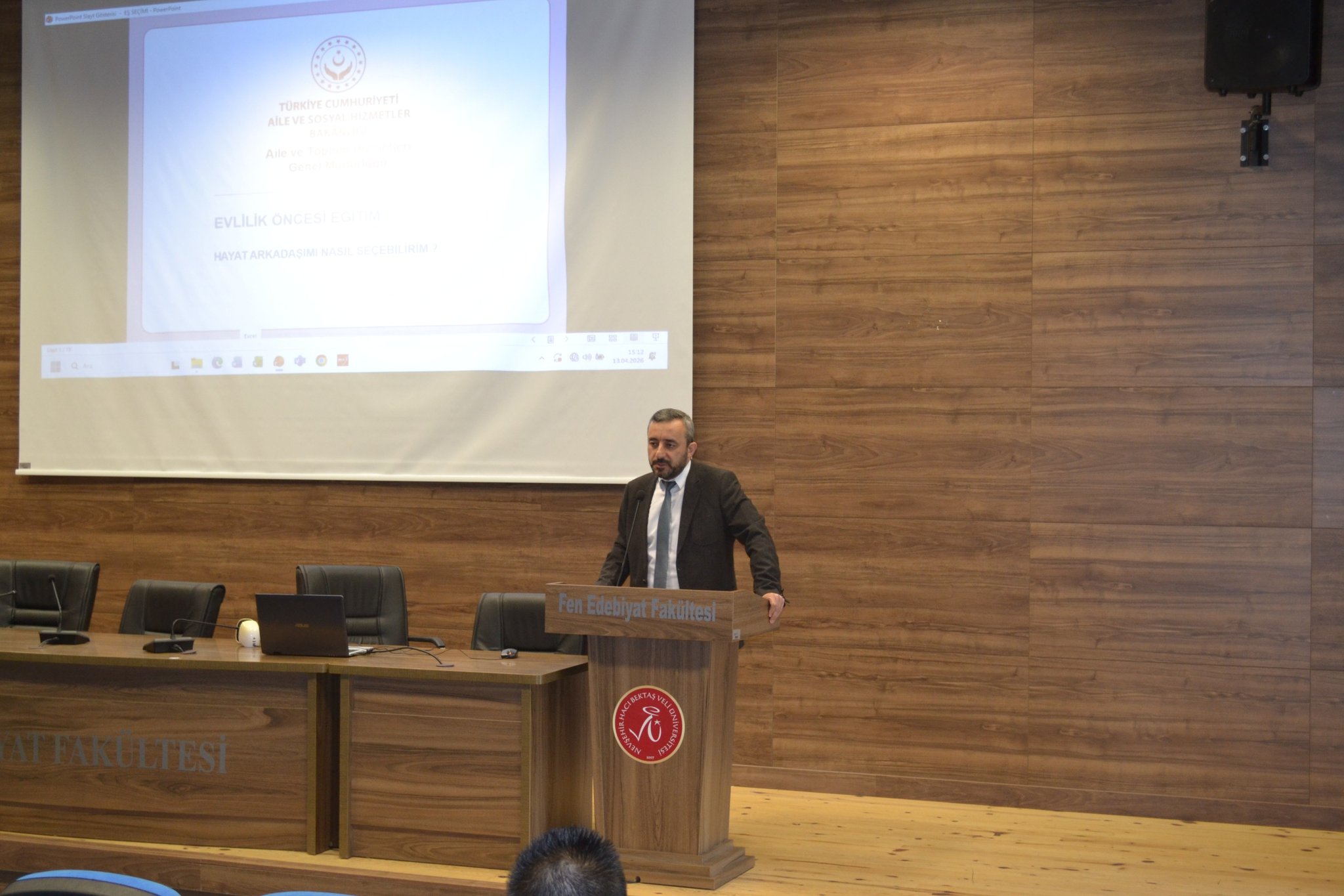 İlimiz HacıBektaş-ı Veli Üniversitesi Diş Hekimliği Fakültesi ve Fen-Edebiyat Fakültesi öğrencilerine yönelik “Evlilik Öncesi Eğitim Programı” düzenlendi. İl Müdür Yardımcısı Fatih ÖZEL tarafından interaktif şekilde gerçekleştirilen sunumda; doğru eş seçimi, etkili iletişim başta olmak üzere birçok konuda bilgi paylaşımında bulunuldu. Ayrıca Bakanlığımızın sunduğu hizmetler hakkında da bilgilendirme yapıldı.