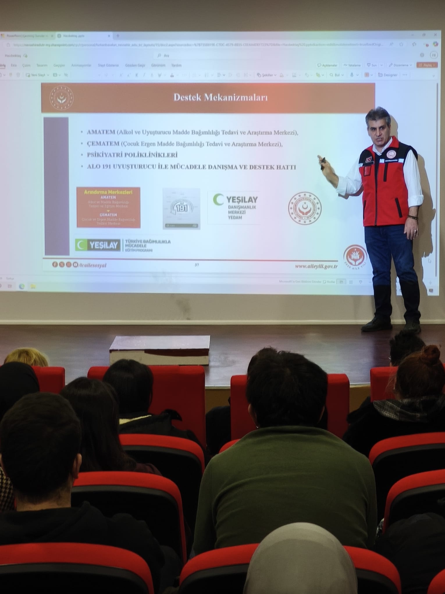 Aile ve Toplum Hizmetleri birim personelleri tarafından Hacıbektaş ilçemizde bulunan Güzel Sanatlar Fakültesi öğretim görevlileri ve öğrencilerine yönelik Türkiye Bağımlılıkla Mücadele Eğitim Programı kapsamında eğitim verilmiştir.