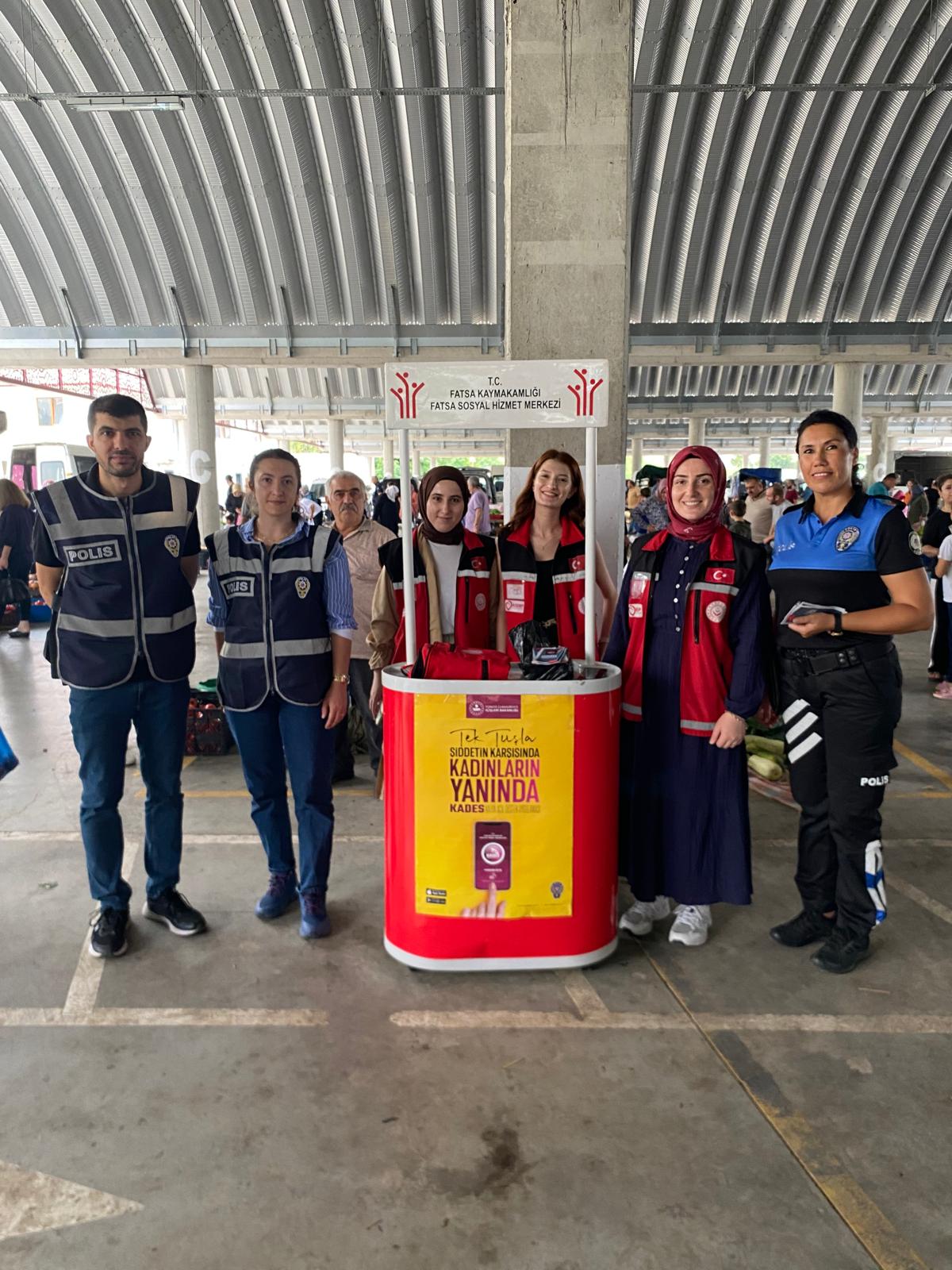 adına yönelik şiddetle mücadele çalışmaları kapsamında, toplumda farkındalık oluşturmak amacıyla emniyet birimleri ile iş birliği içerisinde halk pazarında bilgilendirme etkinliği düzenlendi.