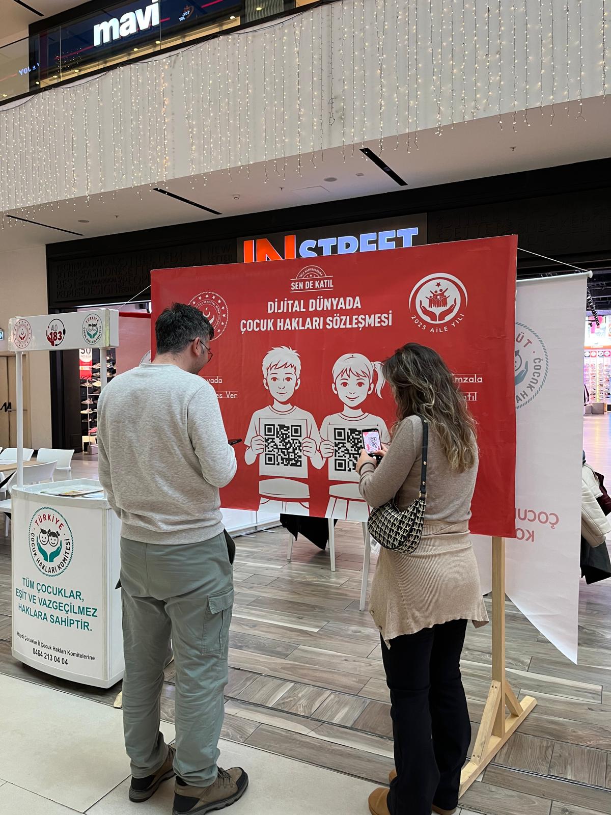 Çocuk Hakları ve Dijital Çocuk Hakları Sözleşmesi konusunda farkındalık oluşturmak ve ilimizde yürütülen koruyucu aile hizmetinin tanıtımını sağlamak amacıyla Çocuk Hizmetleri Birimimiz tarafından Şimal AVM'de bilgilendirme standı kuruldu.