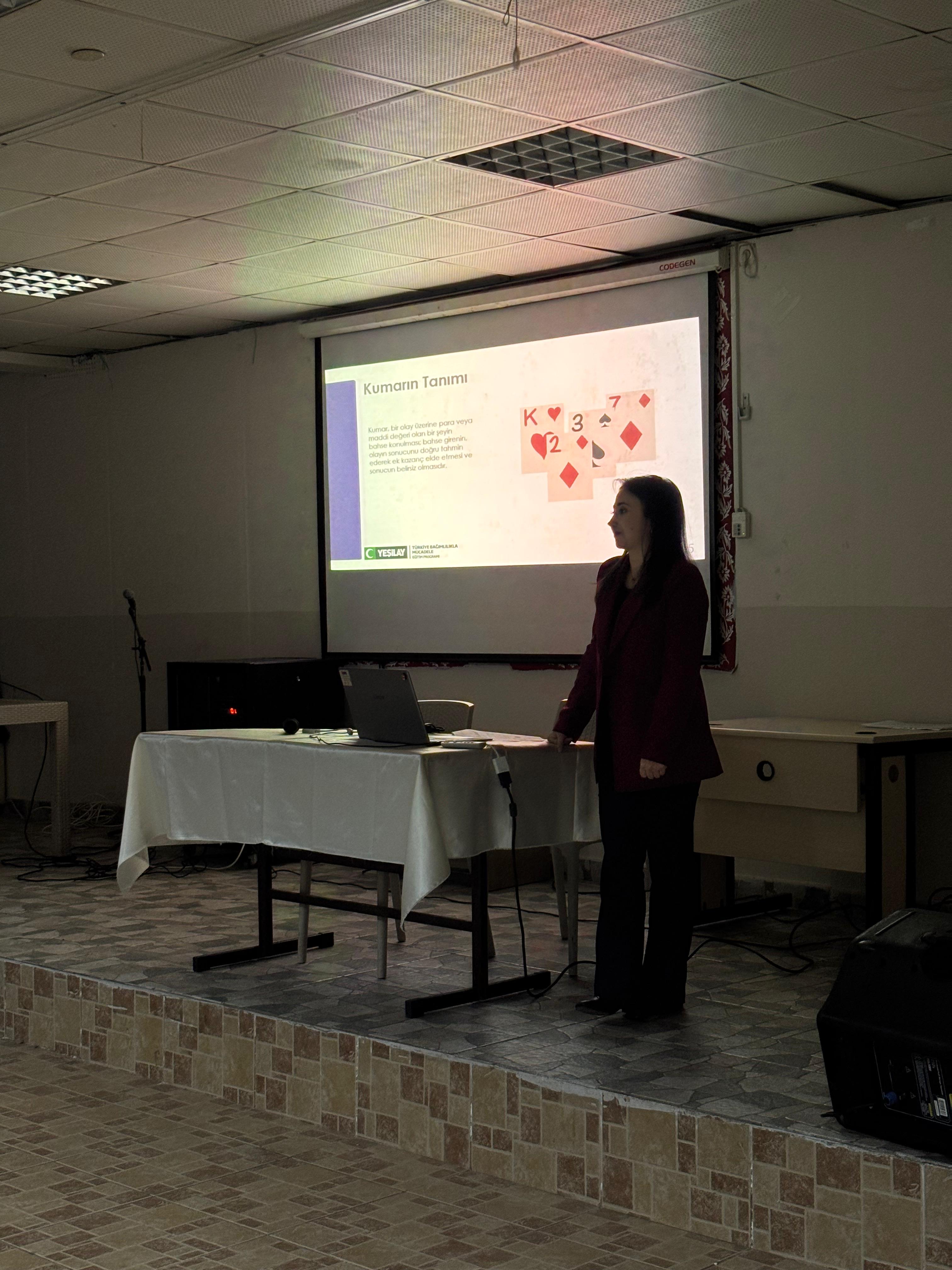 Eğitimde bağımlılıkla mücadele, farkındalık oluşturma ve korunma yöntemleri ele alınarak katılımcılara bilgilendirmede bulunuldu.
