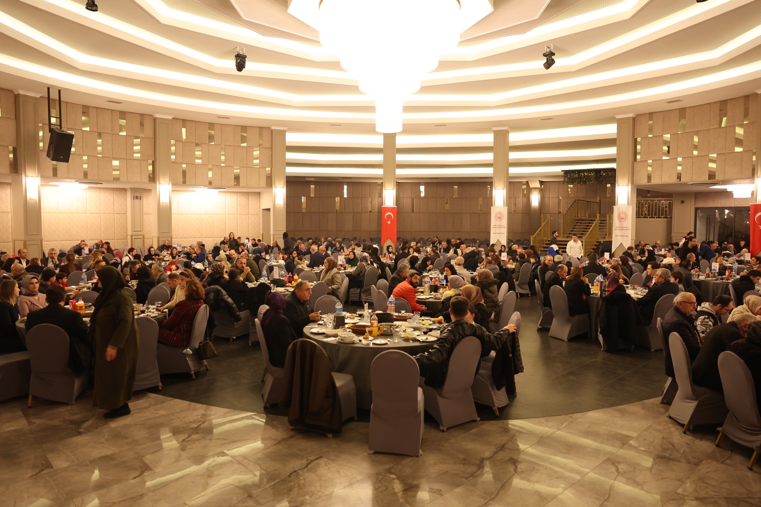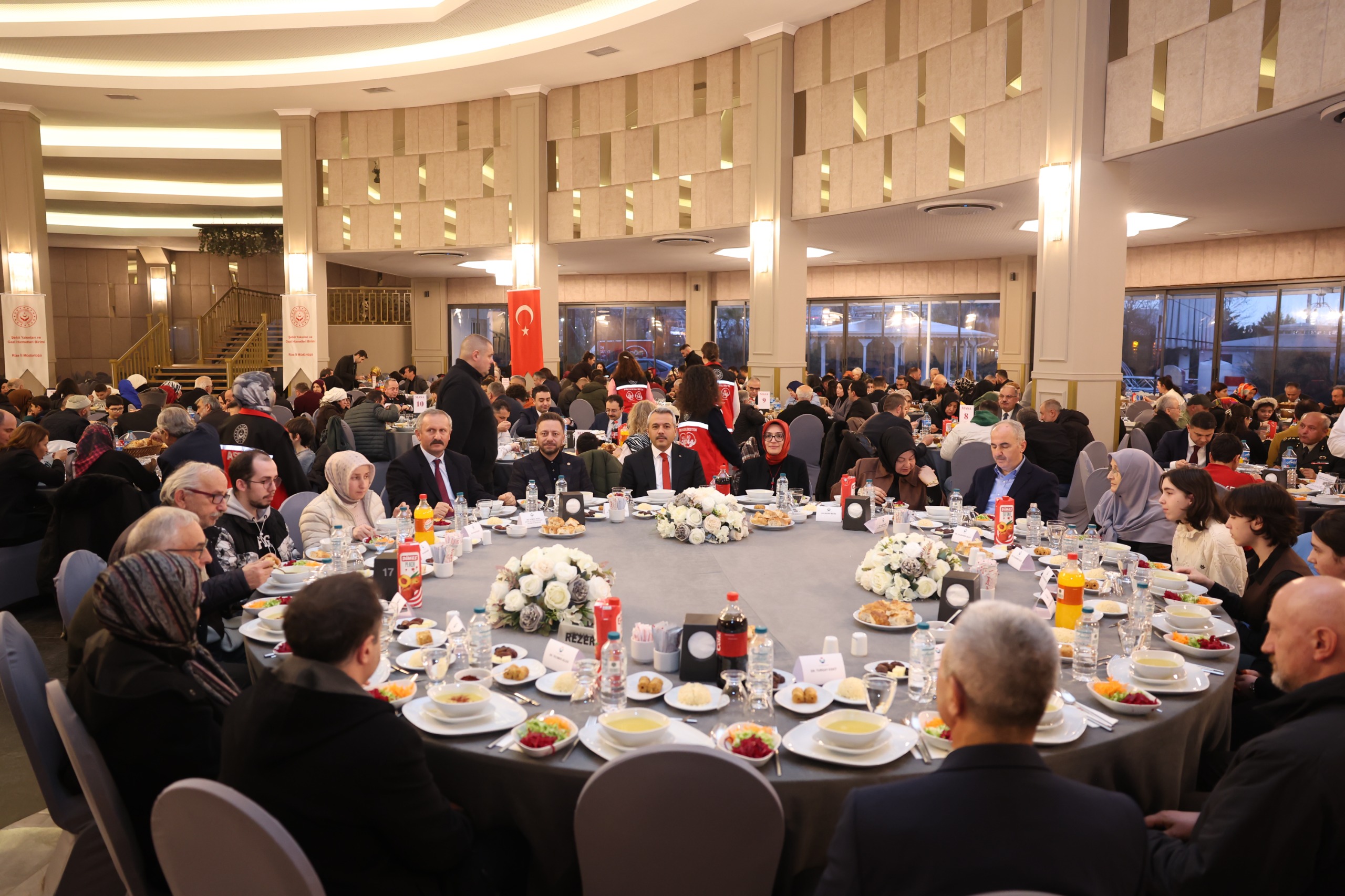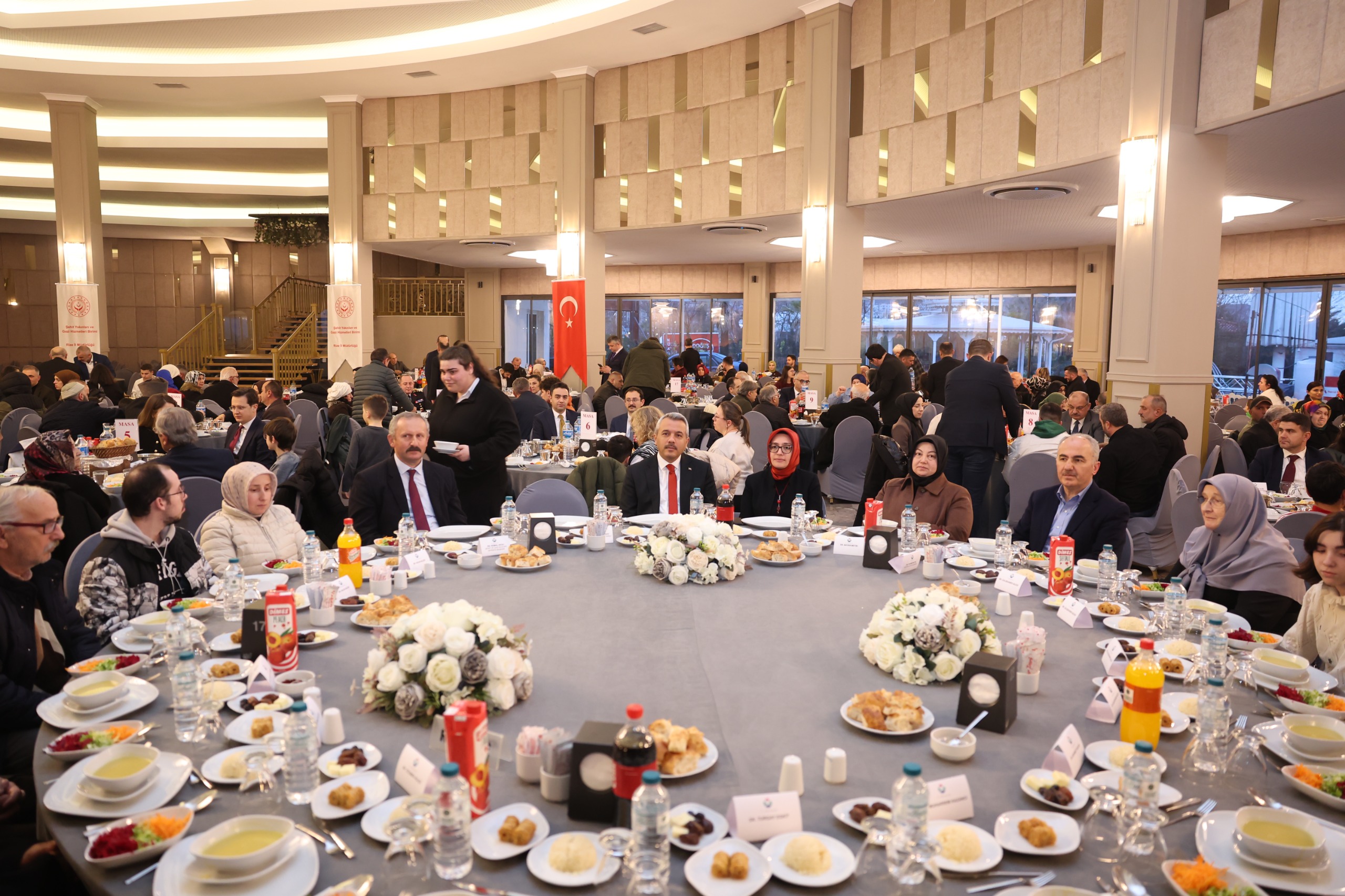 Rize Valiliği himayelerinde, Aile ve Sosyal Hizmetler İl Müdürlüğümüz koordinesinde düzenlenen programda; Ramazan ayının ilk iftarında, aziz şehitlerimizin kıymetli aileleri ve kahraman gazilerimizle aynı sofrada bir araya gelindi. Ramazan ayının manevi atmosferinde gerçekleştirilen buluşmada, birlik ve beraberlik duyguları pekiştirilerek devletimizin şefkati ve milletimizin vefası bir kez daha güçlü şekilde ortaya konuldu.