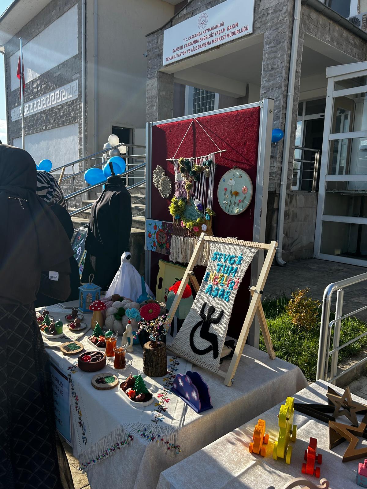 Merkezde hizmet alan engelli bireylerin yıl boyunca emek vererek hazırladığı el işi ve sanat ürünlerinin yer aldığı serginin açılışı, Çarşamba Kaymakamı Mehmet Kamil SAĞLAM, Çarşamba Belediye Başkanı Hüseyin Dündar ve İl Müdür V. Necmettin Aygün tarafından yapıldı. Programa ilçe protokolü, kamu kurum temsilcileri, engelli bireyler ve aileleri katılım sağladı.