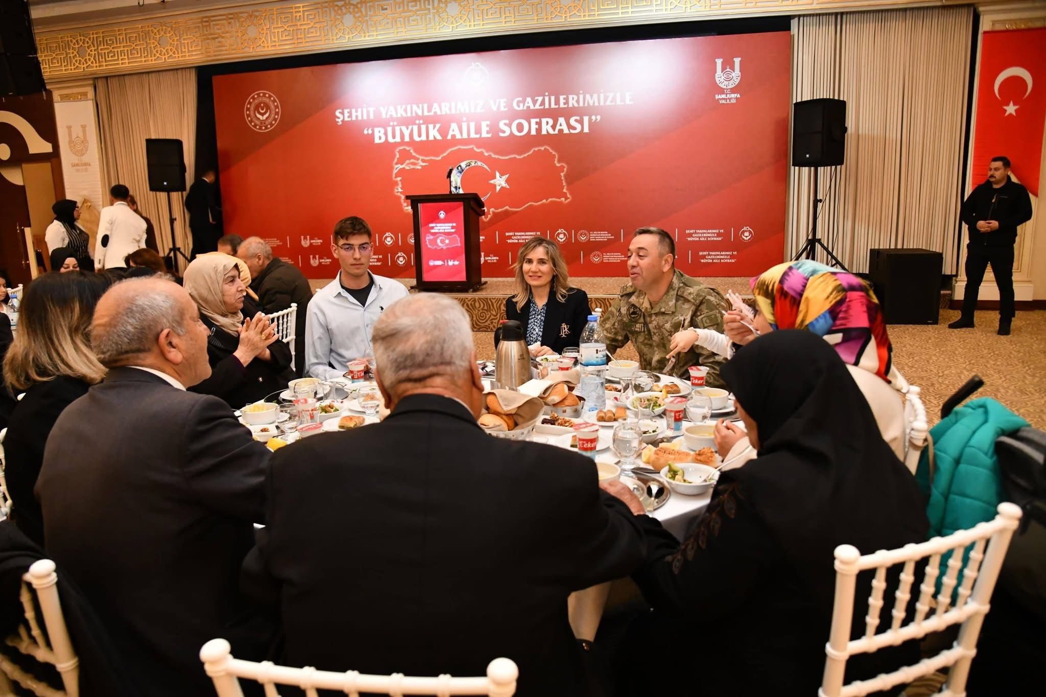 Bakanlığımız öncülüğünde Şanlıurfa Valiliğimiz koordinasyonunda, Ramazan ayının ilk gününde Türkiye genelinde kurulan “Büyük Aile Sofraları” kapsamında, aziz şehitlerimizin kıymetli emanetleri ve kahraman gazilerimizle aynı sofrada buluşmanın huzur ve onurunu yaşadık.
