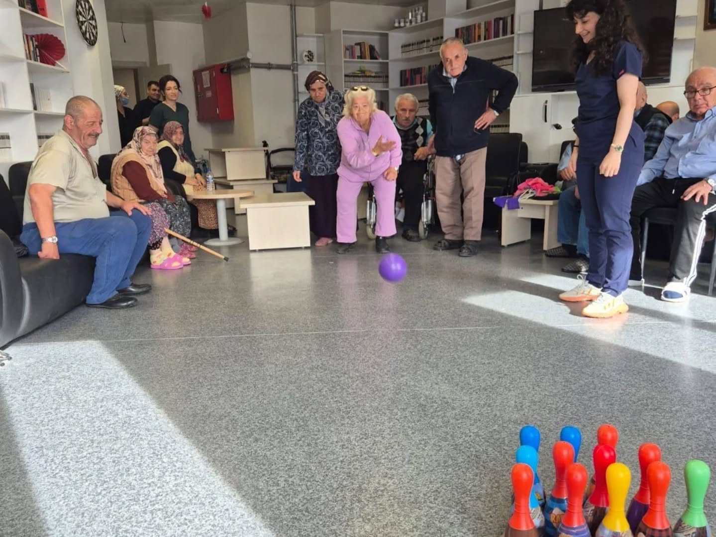 Gerze Huzurevi Müdürlüğümüzde gönüllü olarak faaliyet yürüten Fizyoterapist Betül Ünlü Öztürk, huzurevi sakinlerimizle grup terapisi seansı gerçekleştirmiştir.