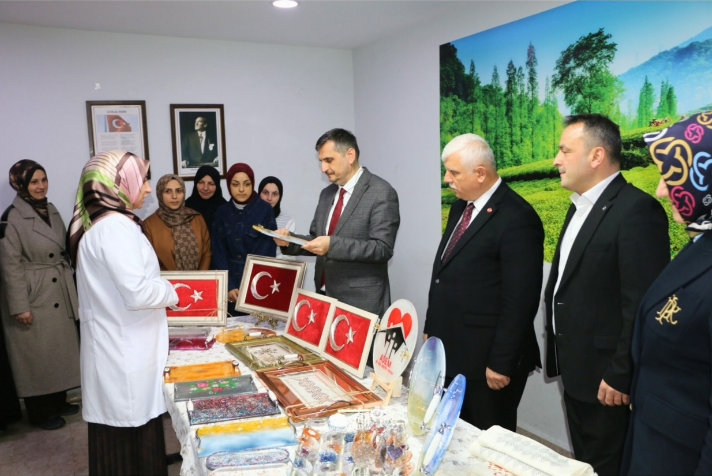 Of Kaymakamlığı Sosyal Yardımlaşma ve Dayanışma Vakfı bünyesinde faaliyet gösteren Aile Destek Merkezinde (ADEM) düzenlenen programda, filografi, giyim, amigurumi ve hasır işleme kurslarında eğitim alan 65 kursiyerin ürünleri sergilendi.
