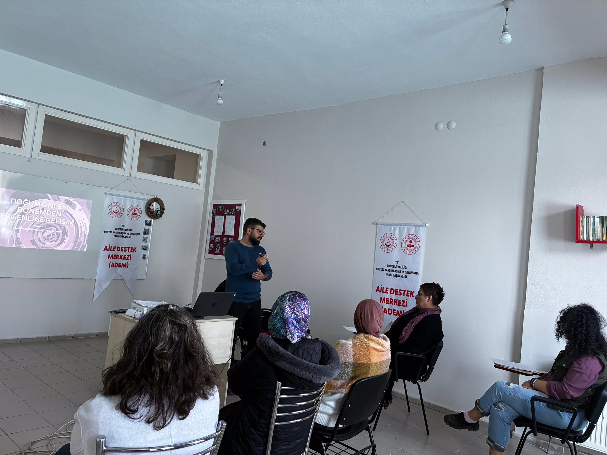 Modüler Aile Eğitim Programı kapsamında Sosyal Hizmet Merkezi Müdürlüğünde görev yapan Psikolojik Danışman Sabri DEMİR tarafından Tunceli Aile Destek Merkezinde ki kursiyerlere ve usta öğreticilere yönelik 9 hafta sürecek eğitim programının 2. Haftasında "Doğum Öncesi Dönemden Ergenliğe Gelişim " konusunda eğitim düzenlenmiştir. Ailelerimizi güçlendirme çalışmalarımız tüm hızıyla devam ediyor! Modüler Aile Eğitim Programı ile; Aile bağlarını kuvvetlendiriyoruz. Çocuklarımızın hayata karşı dayanıklılığını artırarak ihmal ve istismardan korumayı hedefliyoruz. Koruyucu ve önleyici çalışmalarımız tüm hızıyla devam edecektir.