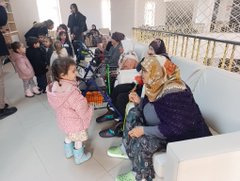 Minik öğrenciler, sevgi ve saygı dolu yaklaşımlarıyla yaşlılarımızın gönlünü kazanmış; geçmiş Ramazan Bayramlarını kutlayarak onlara duygu dolu anlar yaşatmıştır.