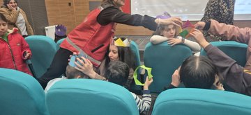 Personelimiz tarafından özenle hazırlanan konferans salonumuz, miniklerimiz için adeta bir film platosuna dönüştü. Etkinliğe özel olarak hazırladığımız renkli şapkalar ve lezzetli ikramlarla sinema keyfini ikiye katladık. Çalışma arkadaşlarımızın emeğiyle süslenen salonun yanı sıra çocuklarımıza özel tasarlanan şapkalar günün favorisi oldu. Film eşliğinde yapılan ikramlarla eğlence zirveye taşındı. "Onların yüzündeki tek bir tebessüm, verdiğimiz tüm emeğin en güzel karşılığı." Çocuklarımızın huzuru ve mutluluğu için sevgiyle çalışmaya, onlara yeni anılar biriktirmeye devam ediyoruz.